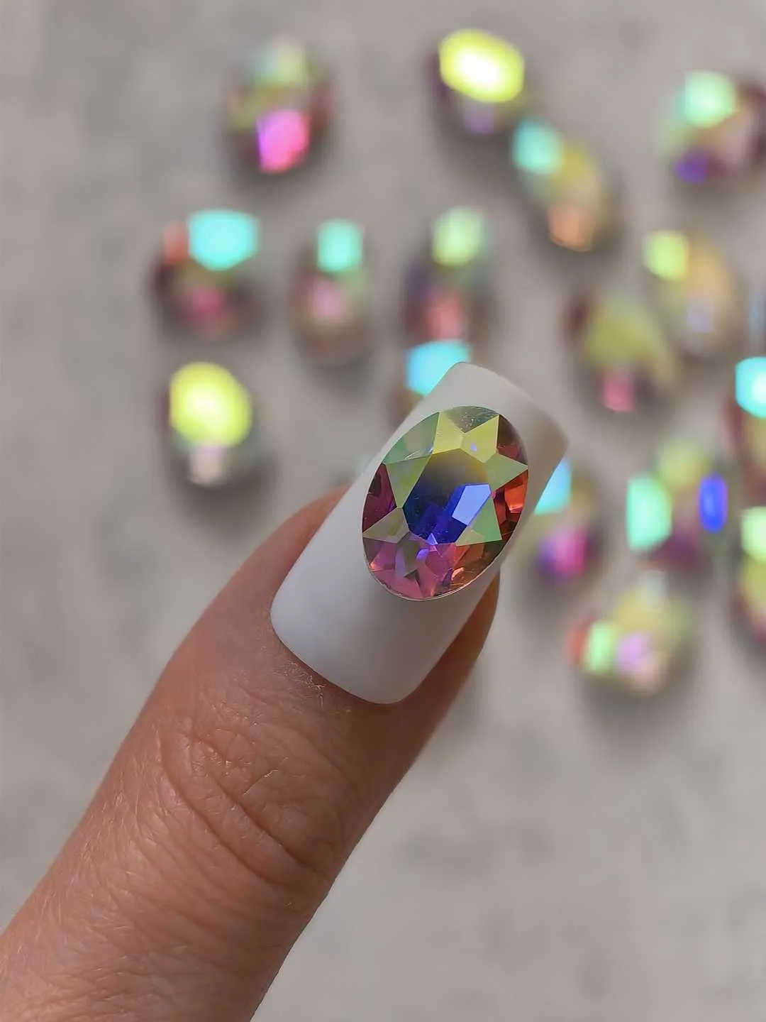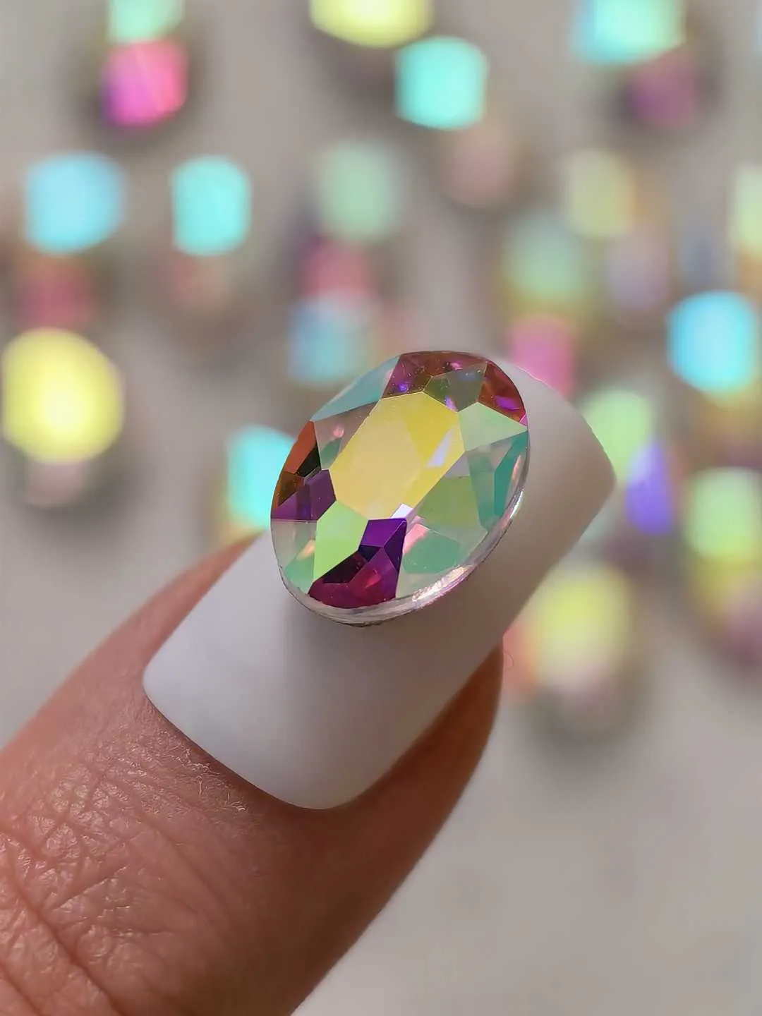 استیکر برجسته ناخن راسا طرح بیضی کریستالی هفت رنگ بزرگ