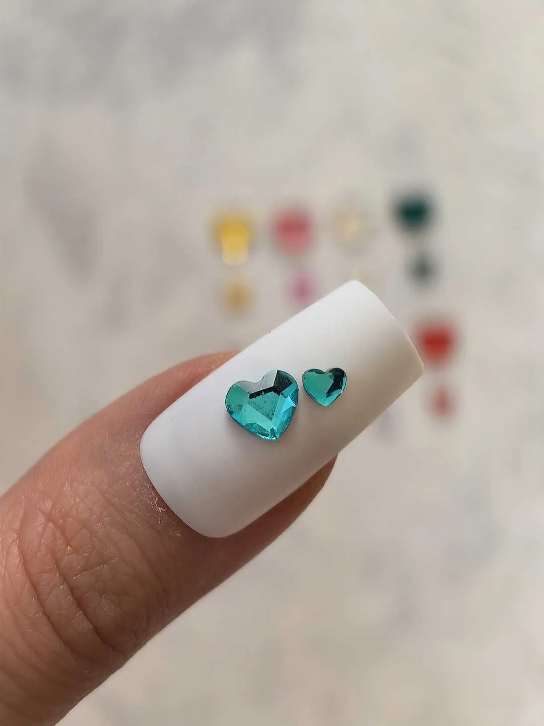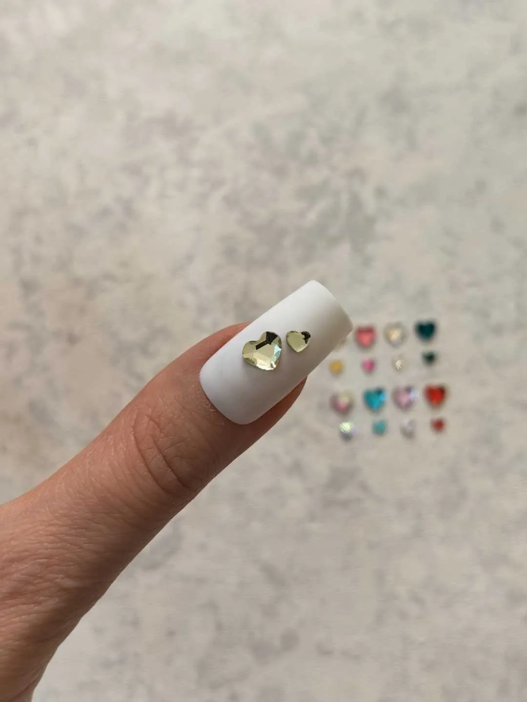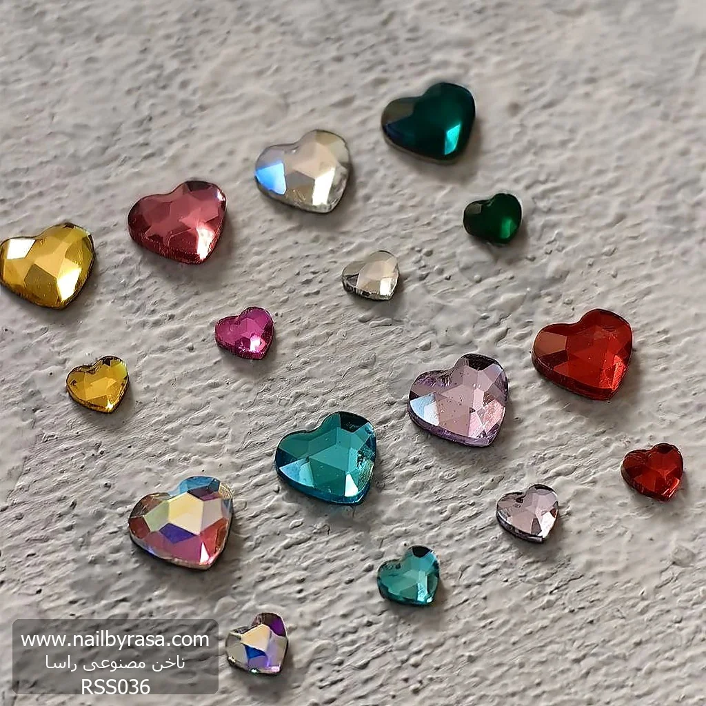 استیکر برجسته ناخن راسا طرح قلب کریستالی رنگی ریز و درشت