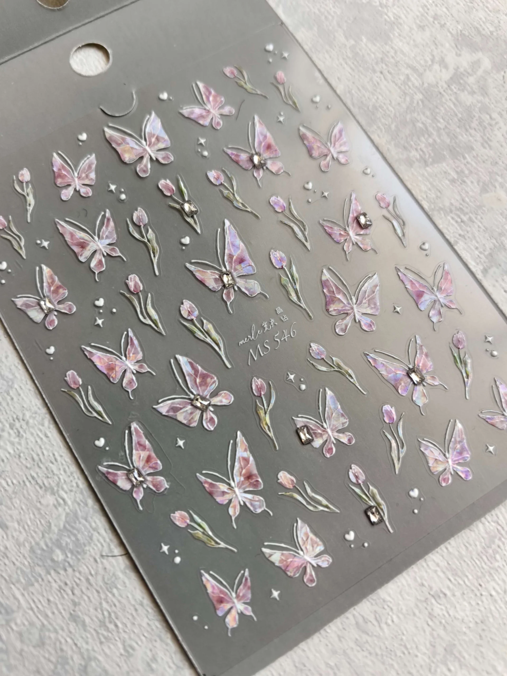 لنز و استیکر [اسلایدر] برجسته ناخن راسا طرح گل و پروانه کد MS546