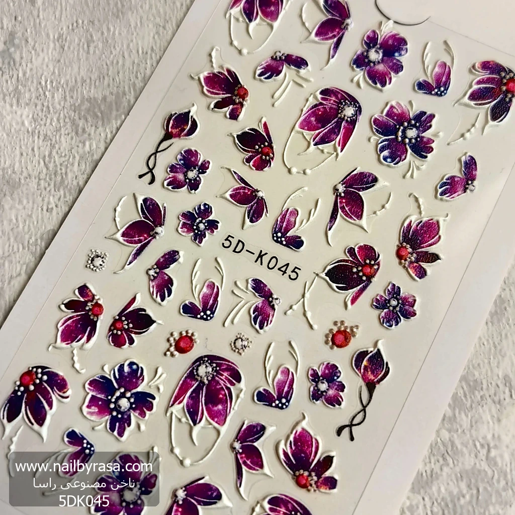 ![5DK045 لنز و استیکر [اسلایدر] برجسته ناخن راسا طرح گل و پروانه کد RSL07](https://www.nailbyrasa.com/wp-content/uploads/2025/08/5DK045.webp)