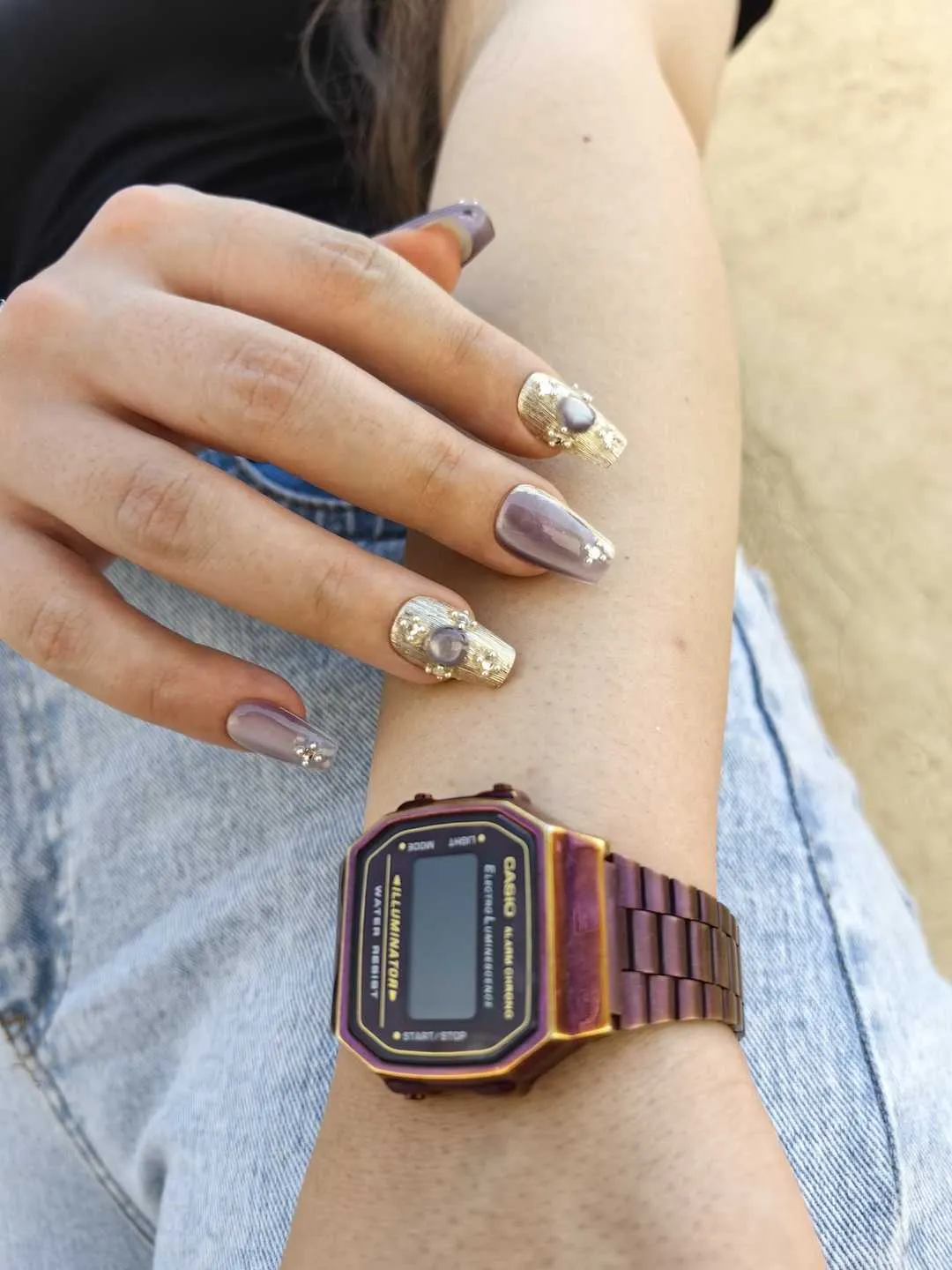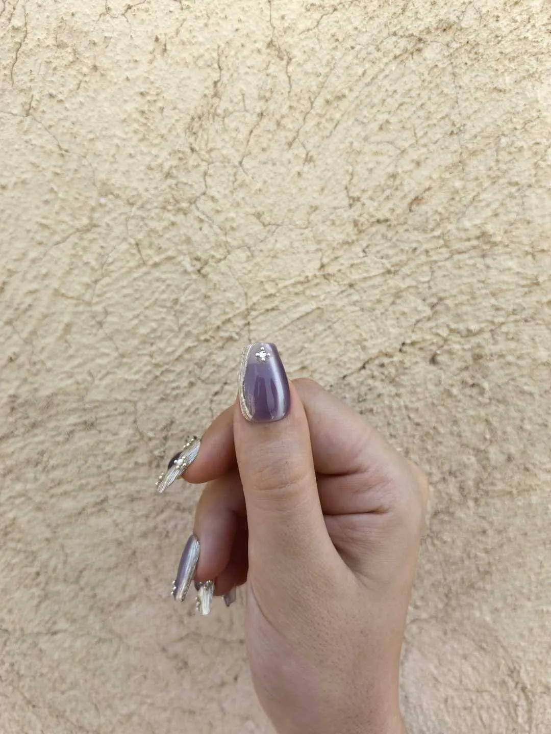 ناخن مصنوعی راسا رنگ یاسی طوسی طرح آیس و متالیک RSR1548