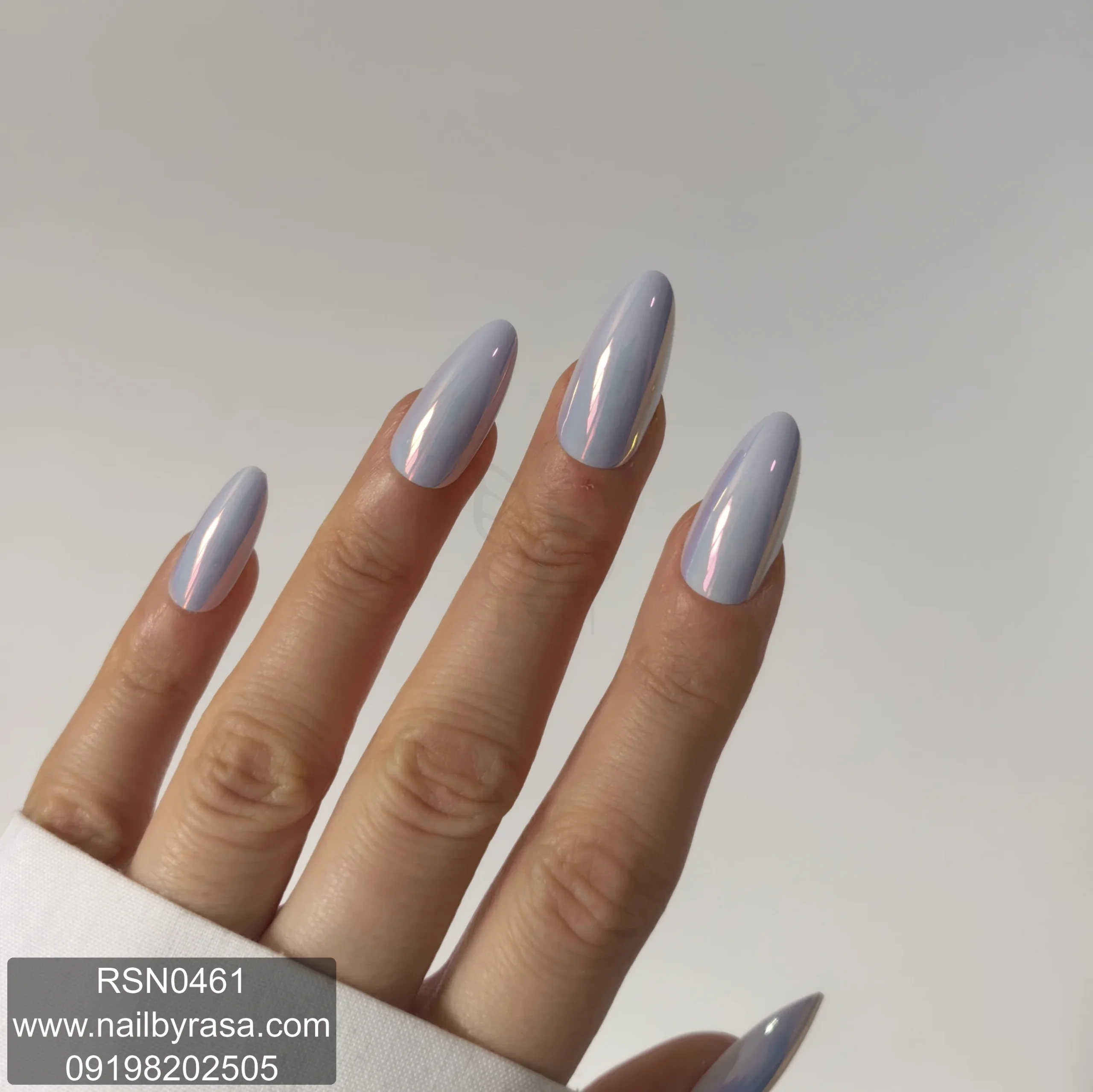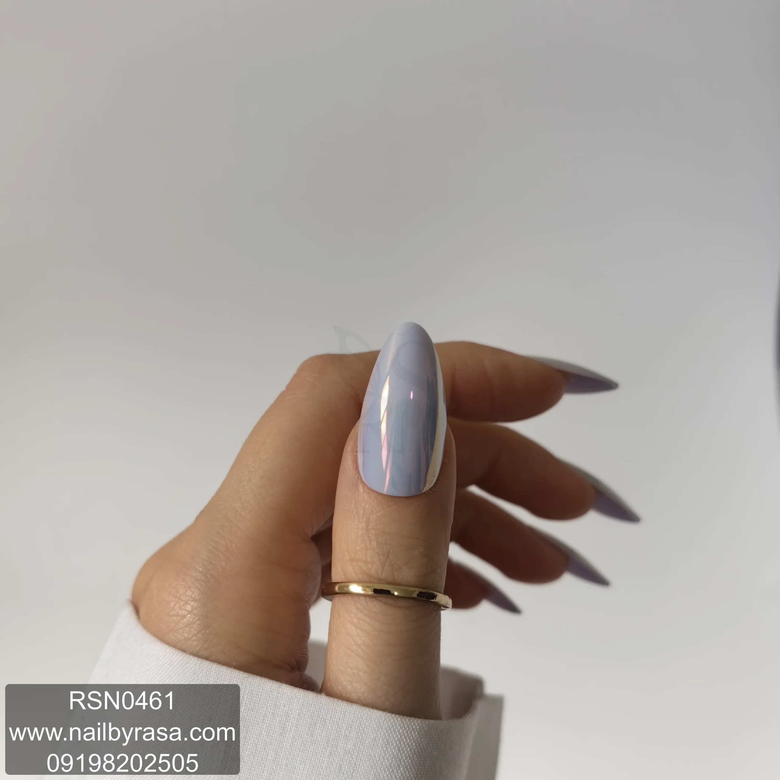 ناخن مصنوعی راسا فرم بادامی رنگ آبی صدفی کروم براق مدل RSN0461