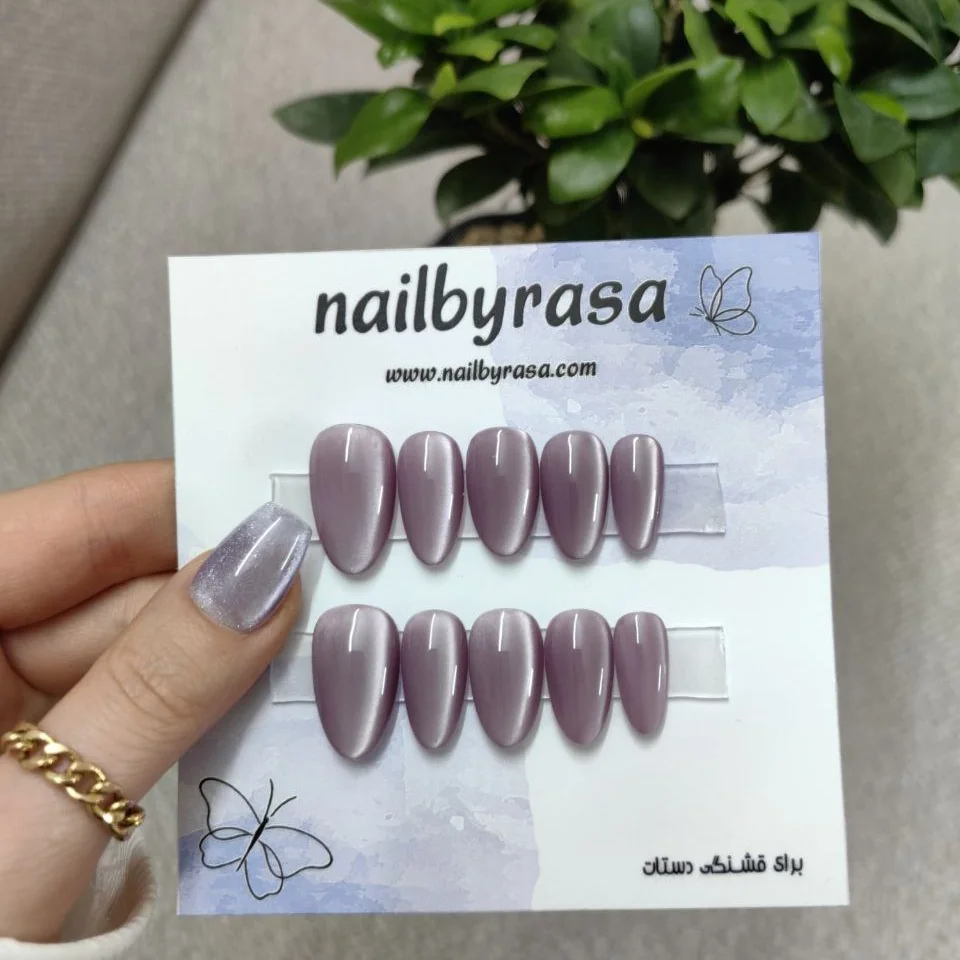ناخن مصنوعی راسا فرم بادامی رنگ آیس بنفش براق مدل RSN0476
