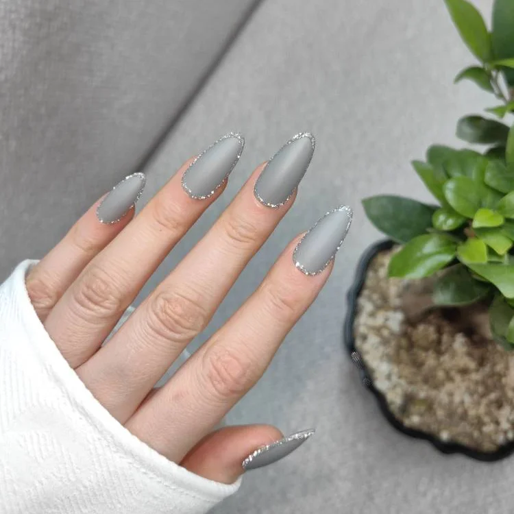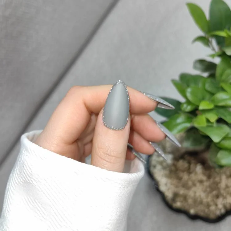 - دورگیری نقرهای (Silver Outline): یک خط بسیار باریک اکلیلی دور تا دور ناخن کشیده شده که مانند یک قاب جواهر عمل میکند. این طرح ظریف، این محصول را به یکی از خاصترینهای دسته ناخن مصنوعی مینیمال تبدیل کرده است.