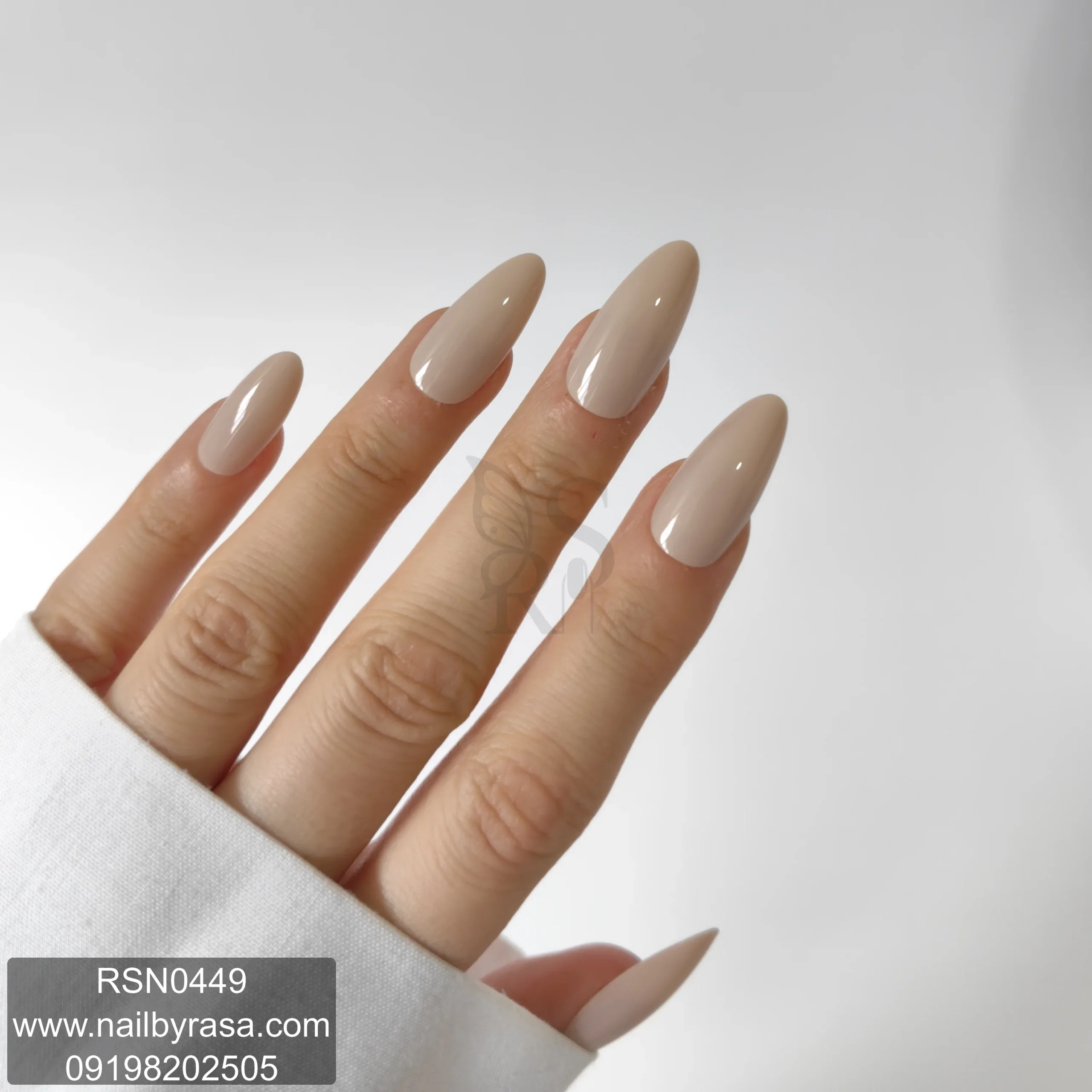 ناخن مصنوعی راسا فرم بادامی رنگ کرمی روشن براق (نود کلاسیک) مدل RSN0449