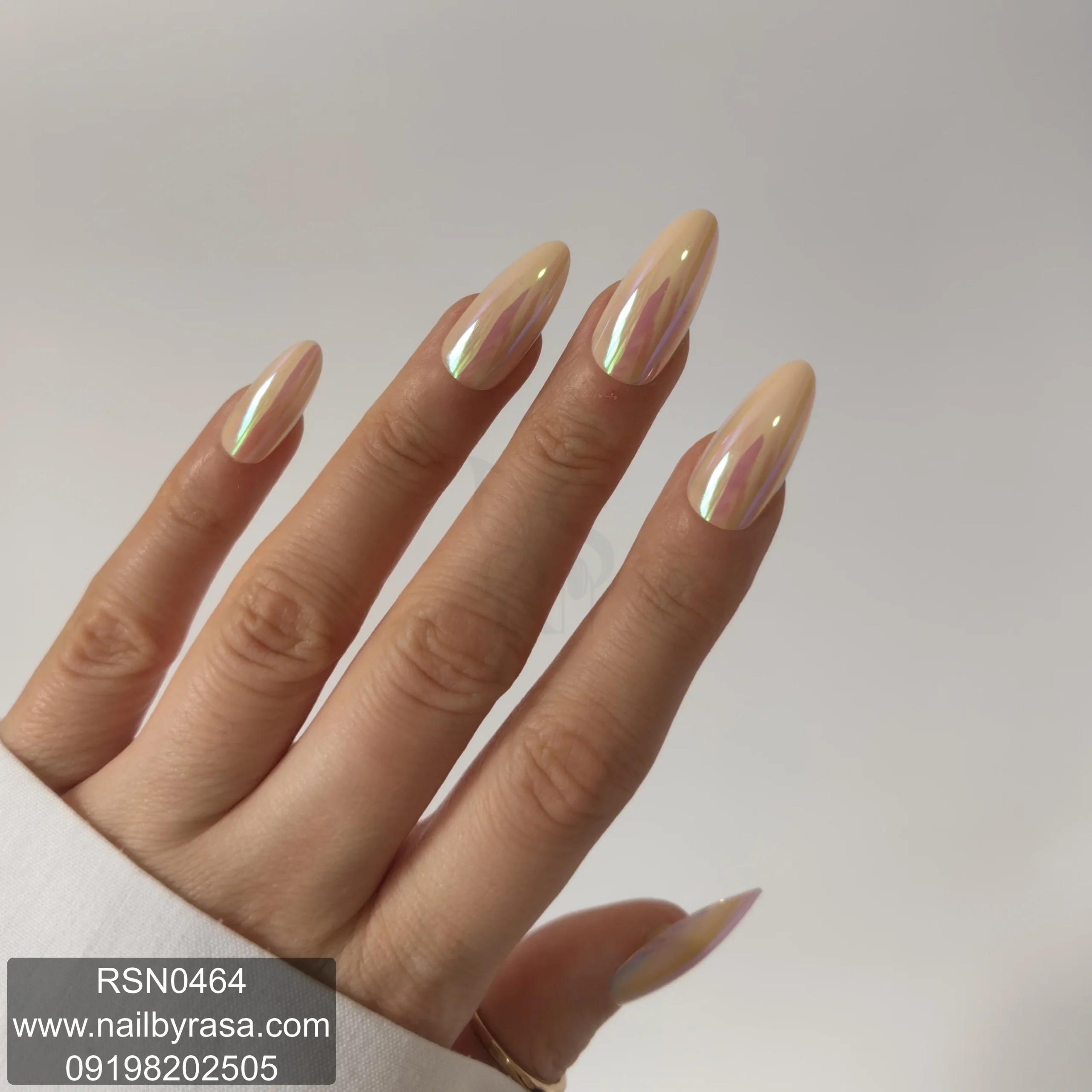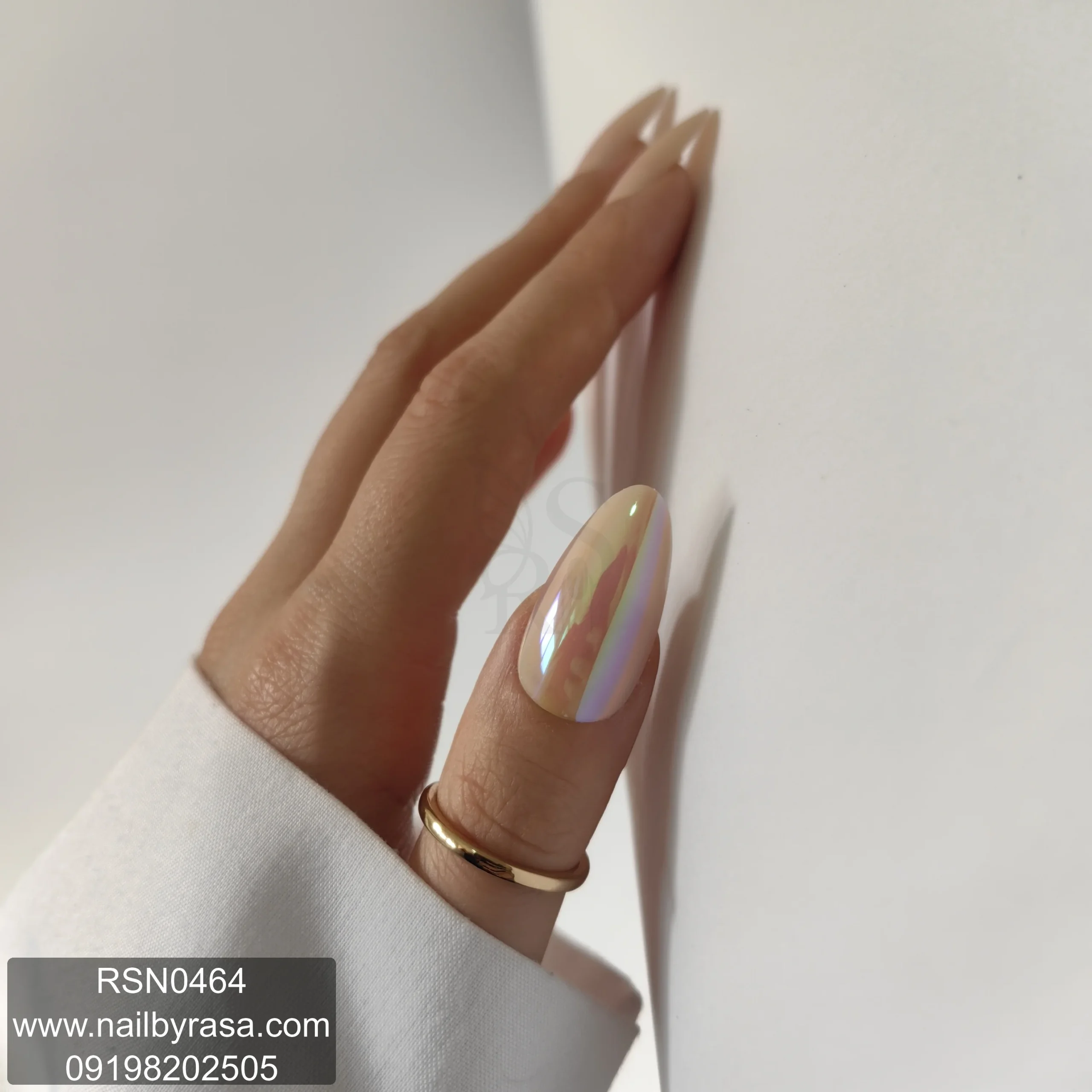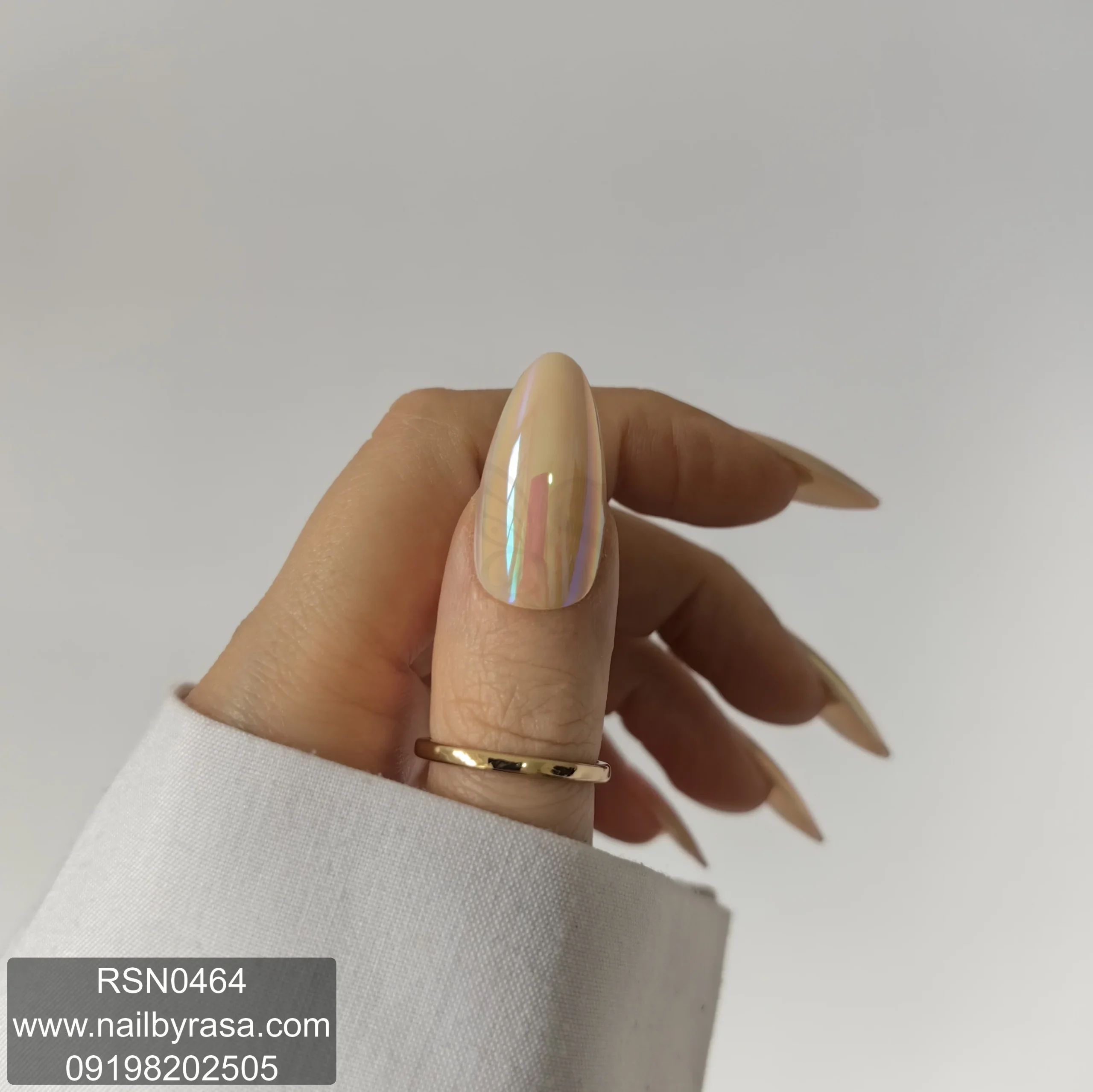 ناخن مصنوعی راسا فرم بادامی رنگ کرمی شاین براق صدفی مدل RSN0464