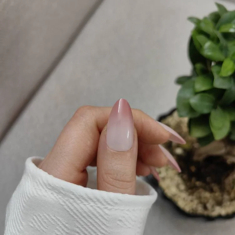 - نوک صورتی چرک (Dusty Rose): رنگ به تدریج به سمت یک صورتی پخته و گوشتی متمایل میشود. این رنگ جذابیت بسیار بیشتری نسبت به صورتیهای معمولی دارد و با هر تناژ پوستی ست میشود. برای دیدن طیفهای مشابه، دسته ناخن مصنوعی کالباسی و ناخن مصنوعی صورتی را ببینید.