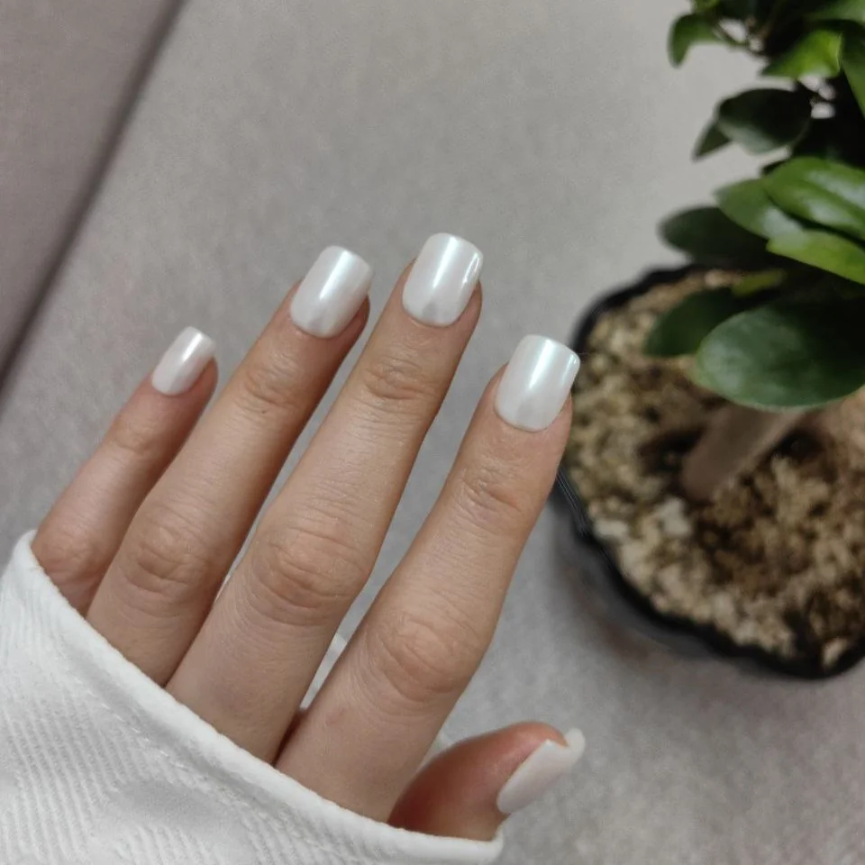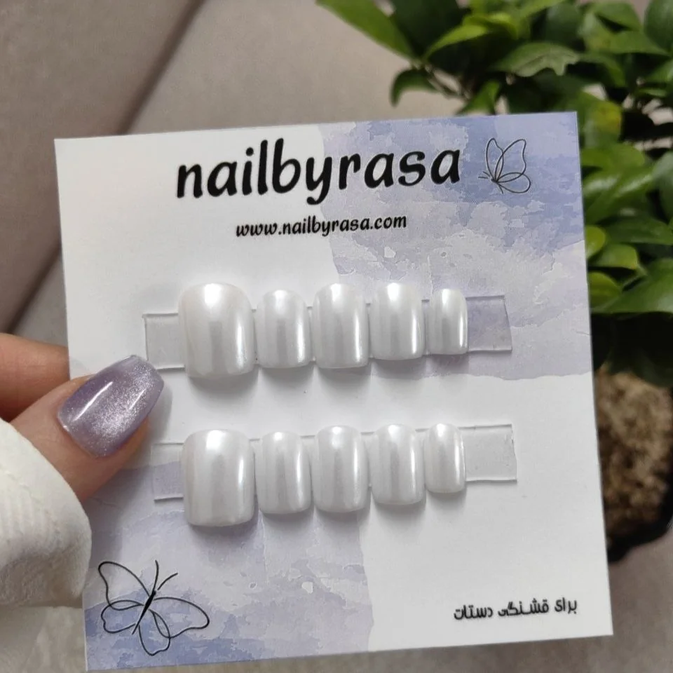 ست ناخن مصنوعی راسا با فرم مربع رنگ سفید مرواریدی، مناسب استفاده روزمره و مهمانی با نصب آسان و قابلیت استفاده چندباره.