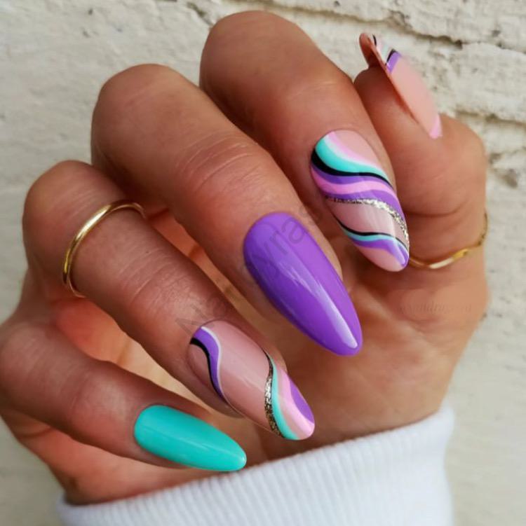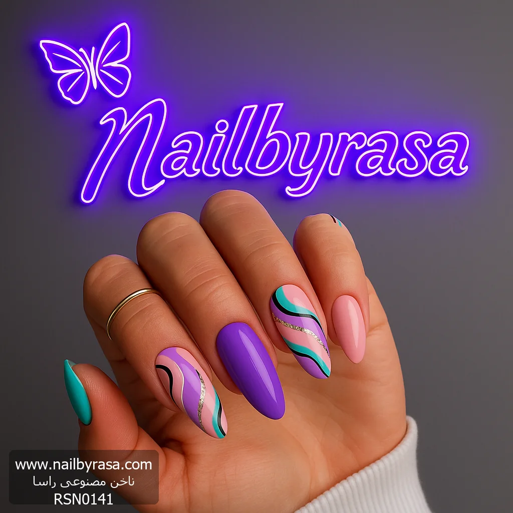 ناخن مصنوعی راسا مدل بنفش آبی طرح خطی