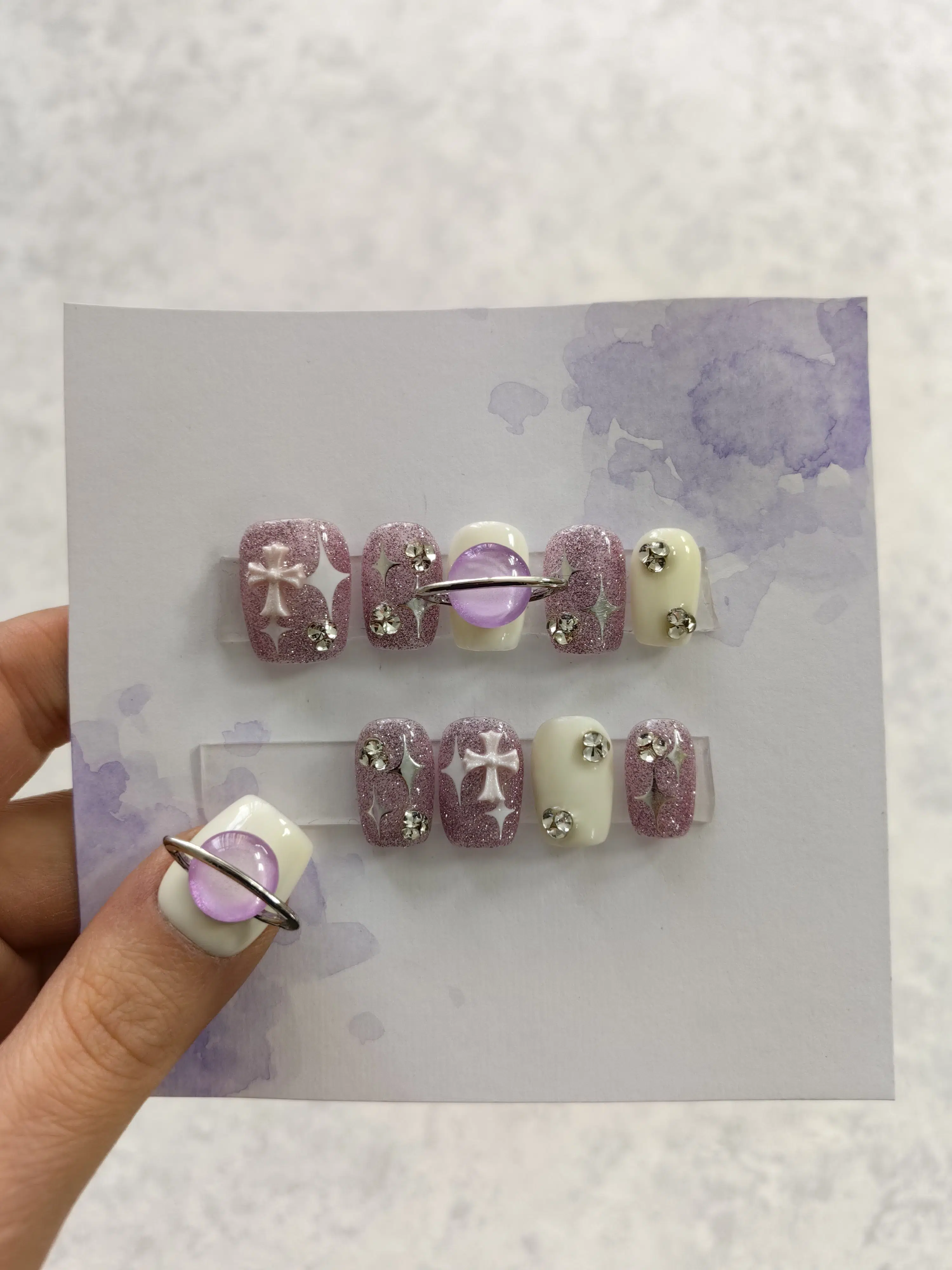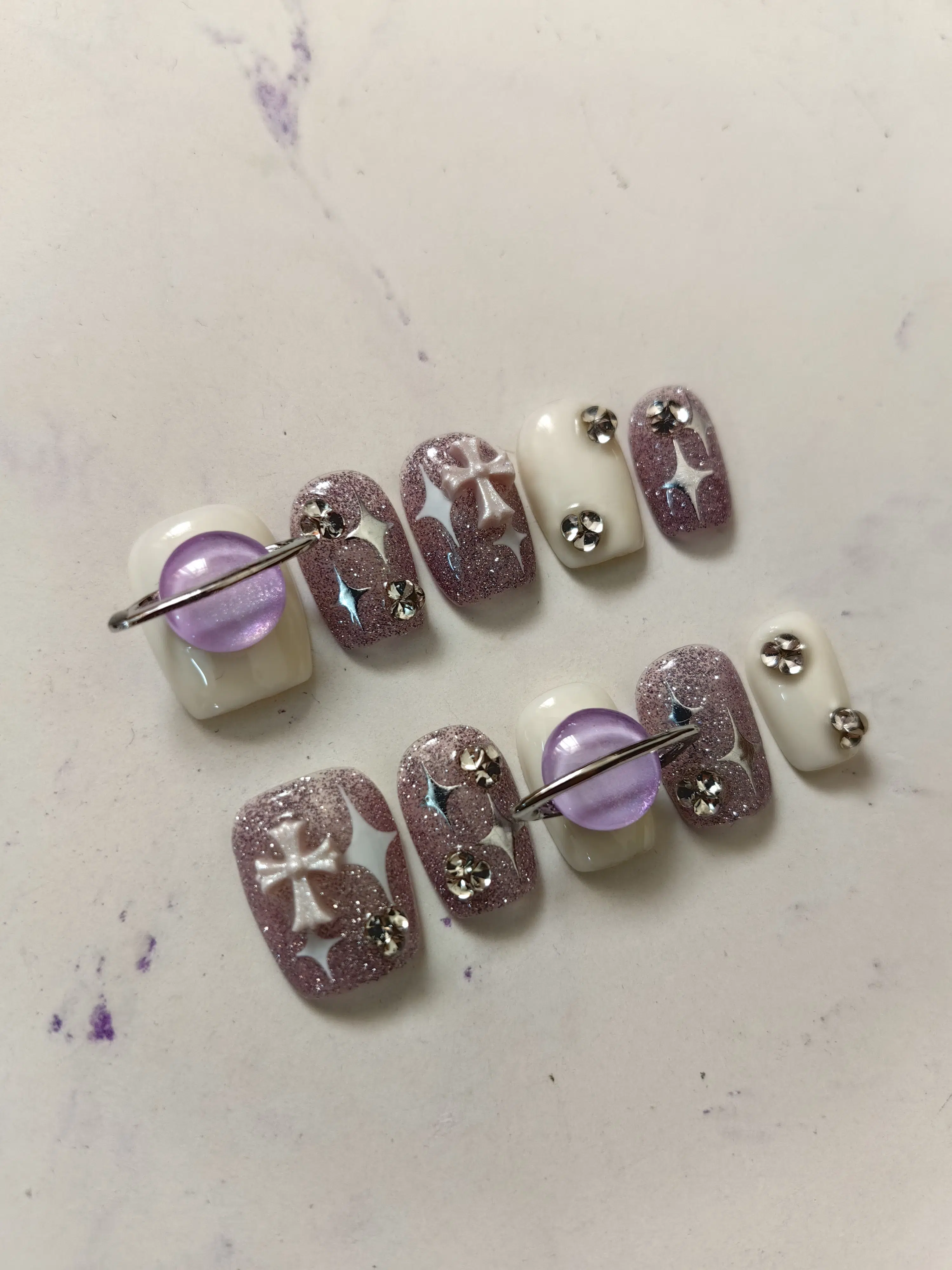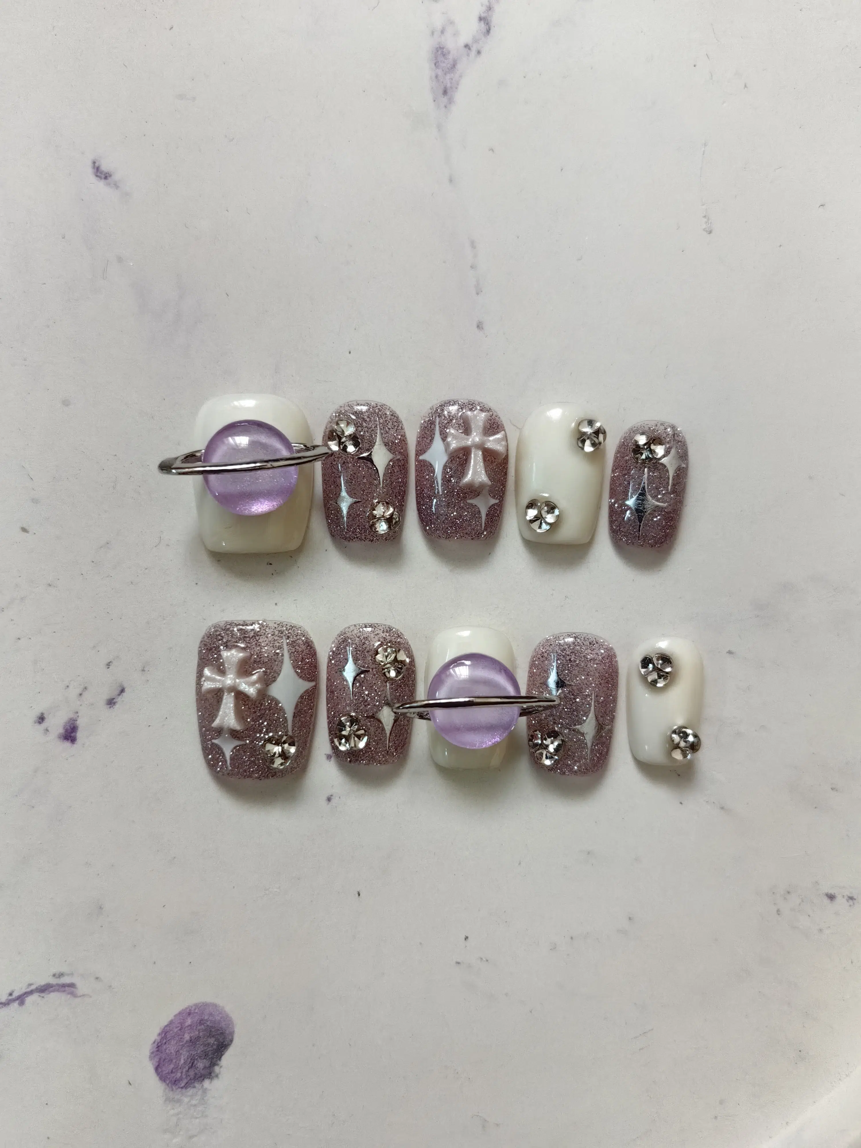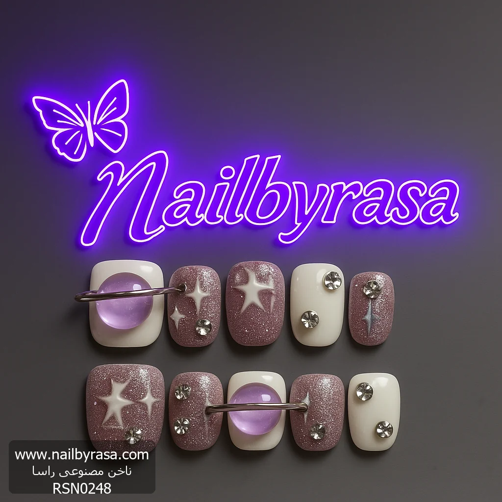 ناخن مصنوعی راسا مدل بنفش سفید اکلیلی طرح کهکشانی کد RSR1128