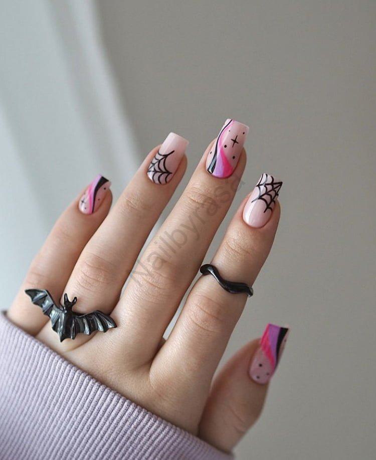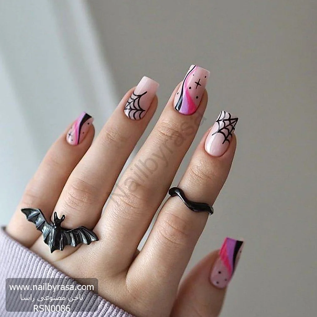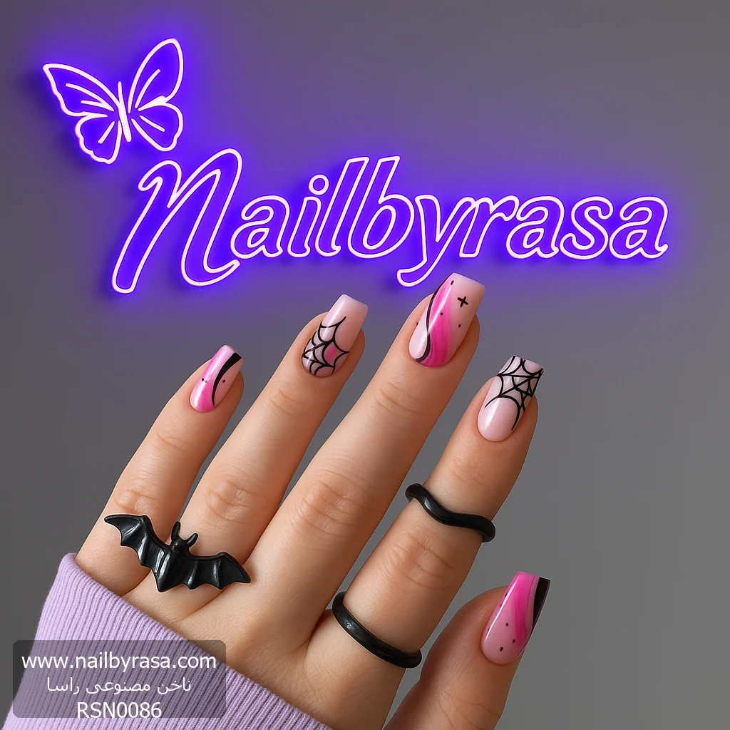 چه کسی گفته هالووین فقط باید ترسناک باشد؟ ناخن مصنوعی راسا مدل RSN0086 با پیروی از ترند محبوب “Pink Halloween”، المانهای کلاسیک ترسناک (تار عنکبوت) را با رنگهای شاد و دخترانه ترکیب کرده است. این ست برای کسانی که میخواهند در جشنها متمایز و “Soft Goth” باشند، ایدهآل است.