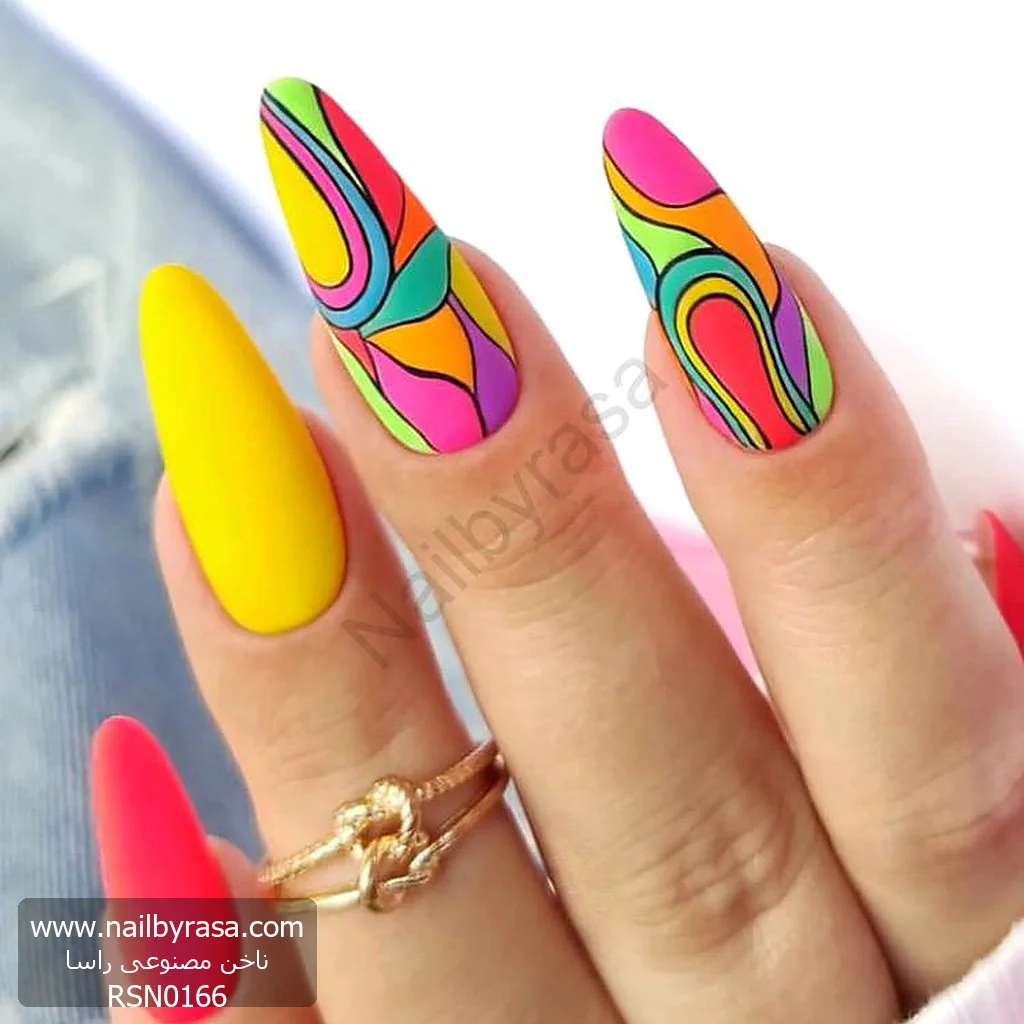 ناخن مصنوعی راسا مدل جیغ طرح رنگی رنگی