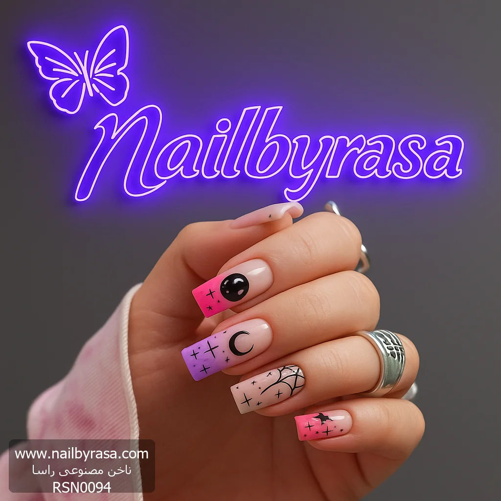اگر عاشق استایلهای “Witchy” (جادوگری) و فانتزی هستید اما نمیخواهید ناخنهایتان بیش از حد تاریک و دارک باشند، ناخن مصنوعی راسا مدل RSN0094 دقیقاً همان چیزی است که میخواهید. این ست با ترکیب رنگهای شاد و نمادهای کلاسیک هالووین، یک استایل اینستاگرامی و بسیار محبوب بین نسل جوان (Gen Z) خلق کرده است.