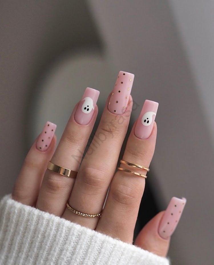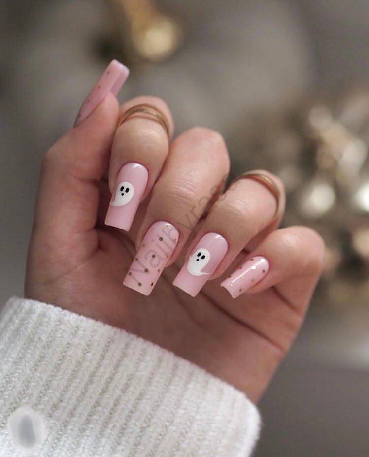 - روحهای دوستداشتنی: طراحی مینیمال و کارتونی روحها روی ناخن، استایل شما را بسیار جوانپسند و شاداب میکند. این طرح برای عکاسیهای اینستاگرامی و استایلهای Y2K فوقالعاده است (دسته ناخن مصنوعی فانتزی).