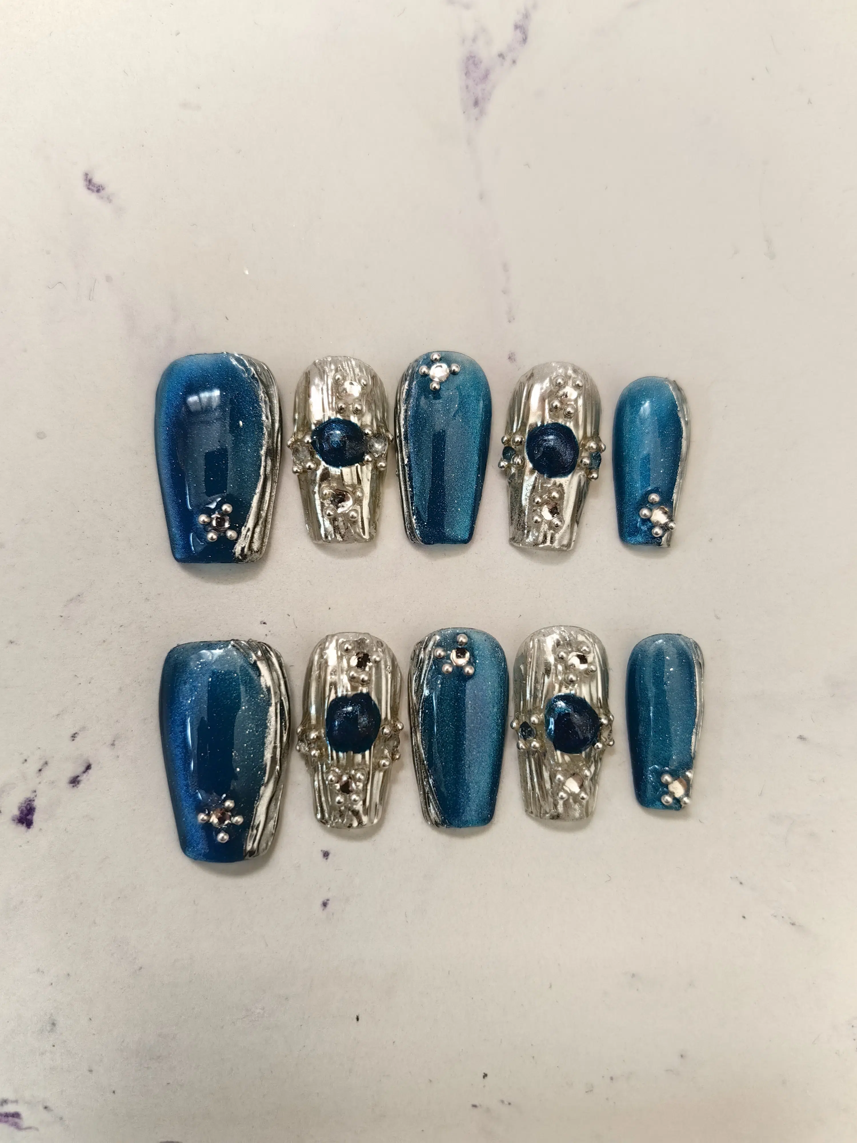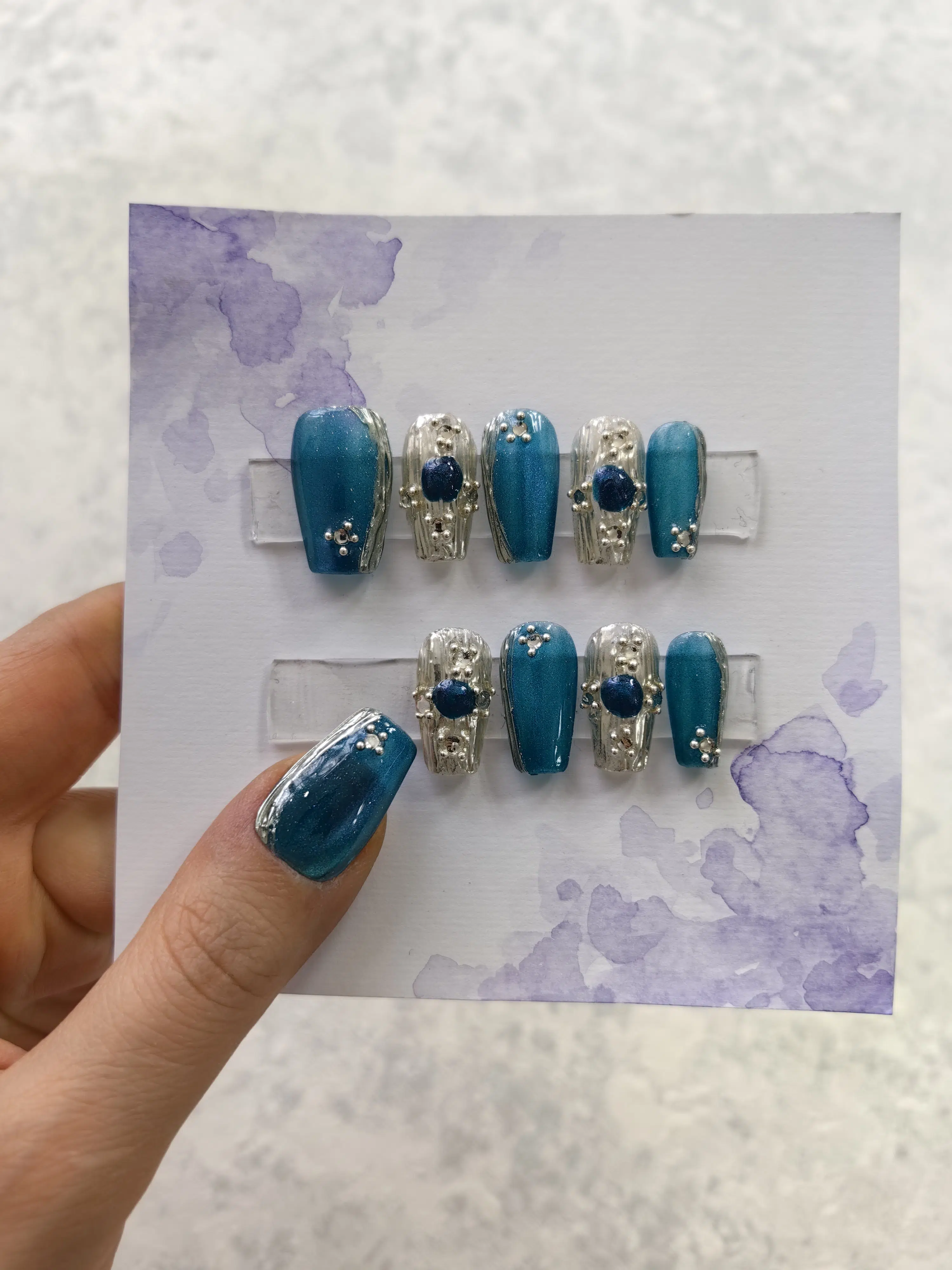 ناخن مصنوعی راسا مدل سرمه ای نقره ای طرح آبنباتی نگینی کد RSR1212