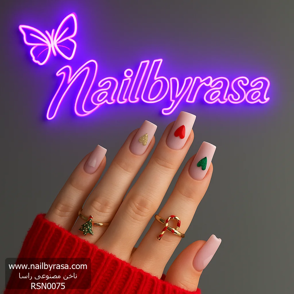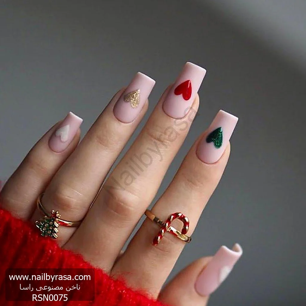 همیشه لازم نیست برای نشان دادن حس و حال کریسمس از طرحهای شلوغ استفاده کنید. ناخن مصنوعی راسا مدل RSN0075 با استفاده از زبان سادهی “قلب” و رنگهای نمادین فصل، یک استایل زمستانی بسیار شیک، دخترانه و ملایم خلق کرده است.