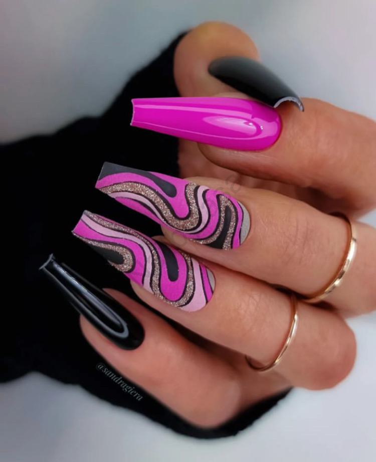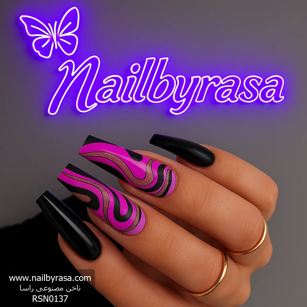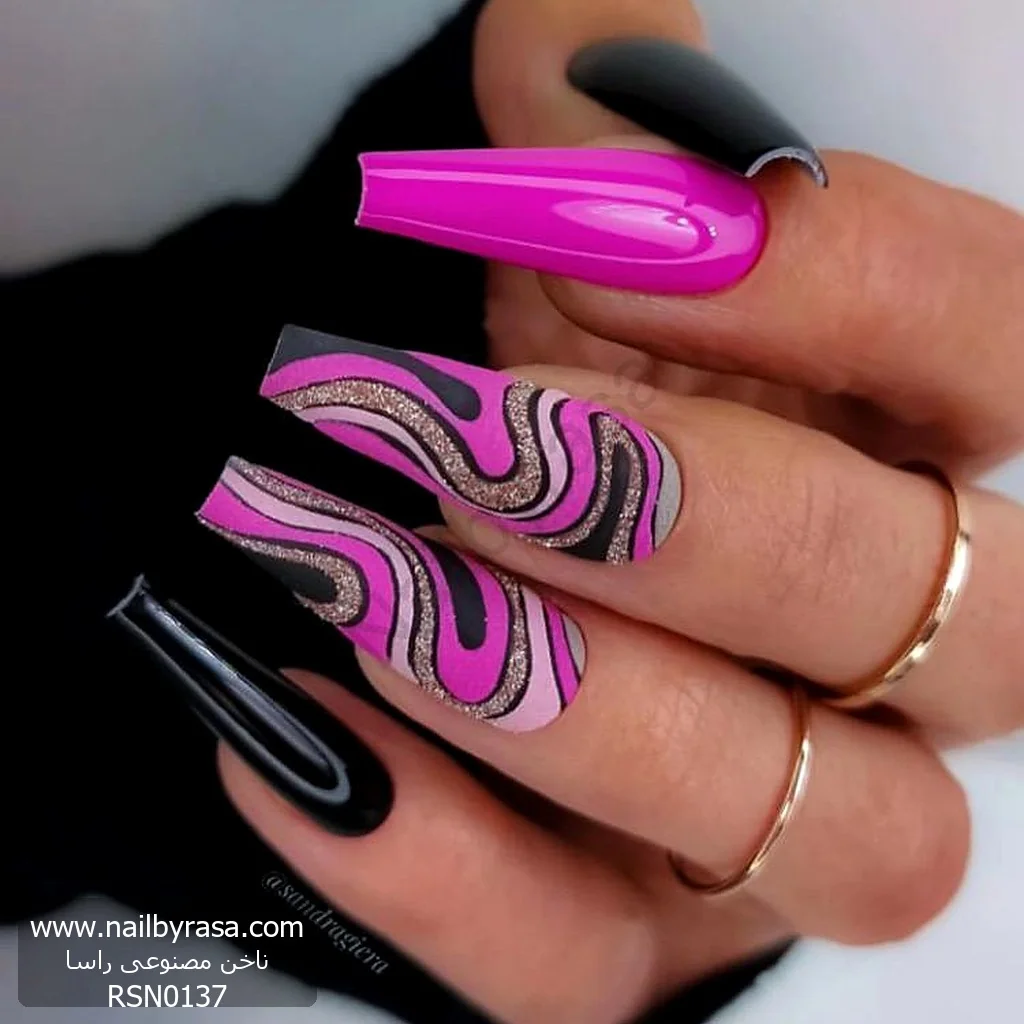 ناخن مصنوعی راسا مدل صورتی مشکی ماربل خطی