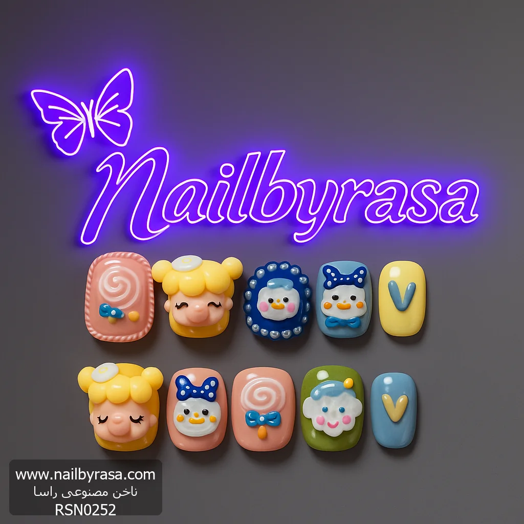 ناخن مصنوعی راسا مدل فانتزی رنگی طرح دختر و آبنبات کد RSR767