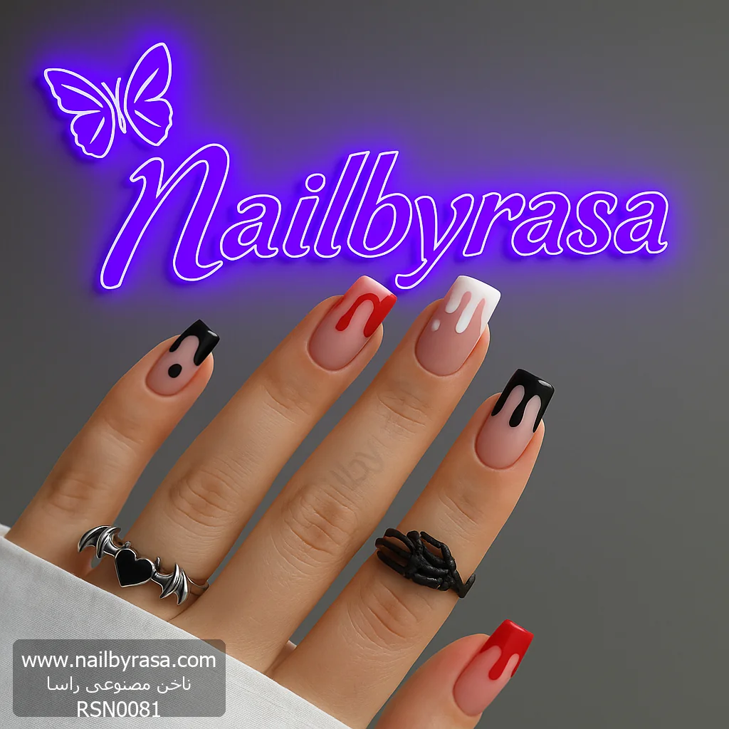 طرحهای “Drip” یا ریزش قطرهای یکی از جذابترین ترندهای استریتاستایل (Street Style) و هنر ناخن هستند. ناخن مصنوعی راسا مدل RSN0081 این ترند را با تمی دارک و هالووینی ترکیب کرده تا یک ست بینظیر برای کسانی بسازد که از طرحهای تکراری خسته شدهاند و به دنبال استایلی جسورانه میگردند.
