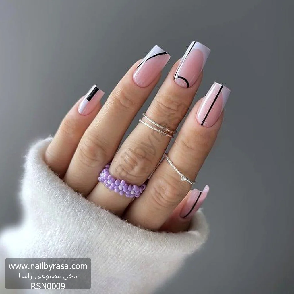 اگر طرفدار خطوط صاف، نظم هندسی و استایلهای مینیمال هستید، ناخن مصنوعی راسا مدل RSN0009 برای شما ساخته شده است. این مدل با الهام از معماری مدرن، طرح کلاسیک فرنچ را با خطوط گرافیکی ترکیب کرده تا استایلی “آرشیتکتی” و بسیار شیک خلق کند.