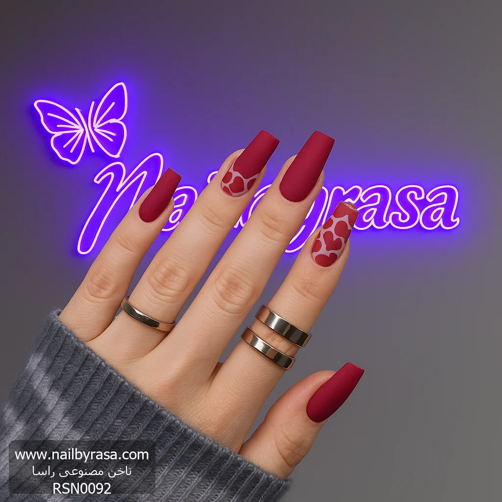 برای قرارهای عاشقانه، روز ولنتاین یا حتی یک استایل روزمره شیک، هیچ چیز به اندازه ناخنهای قرمز مات جذاب نیست. ناخن مصنوعی راسا مدل RSN0092 با طراحی قلبهای مدرن، ظاهری “کیوت” اما در عین حال بسیار باکلاس و خانمانه دارد.