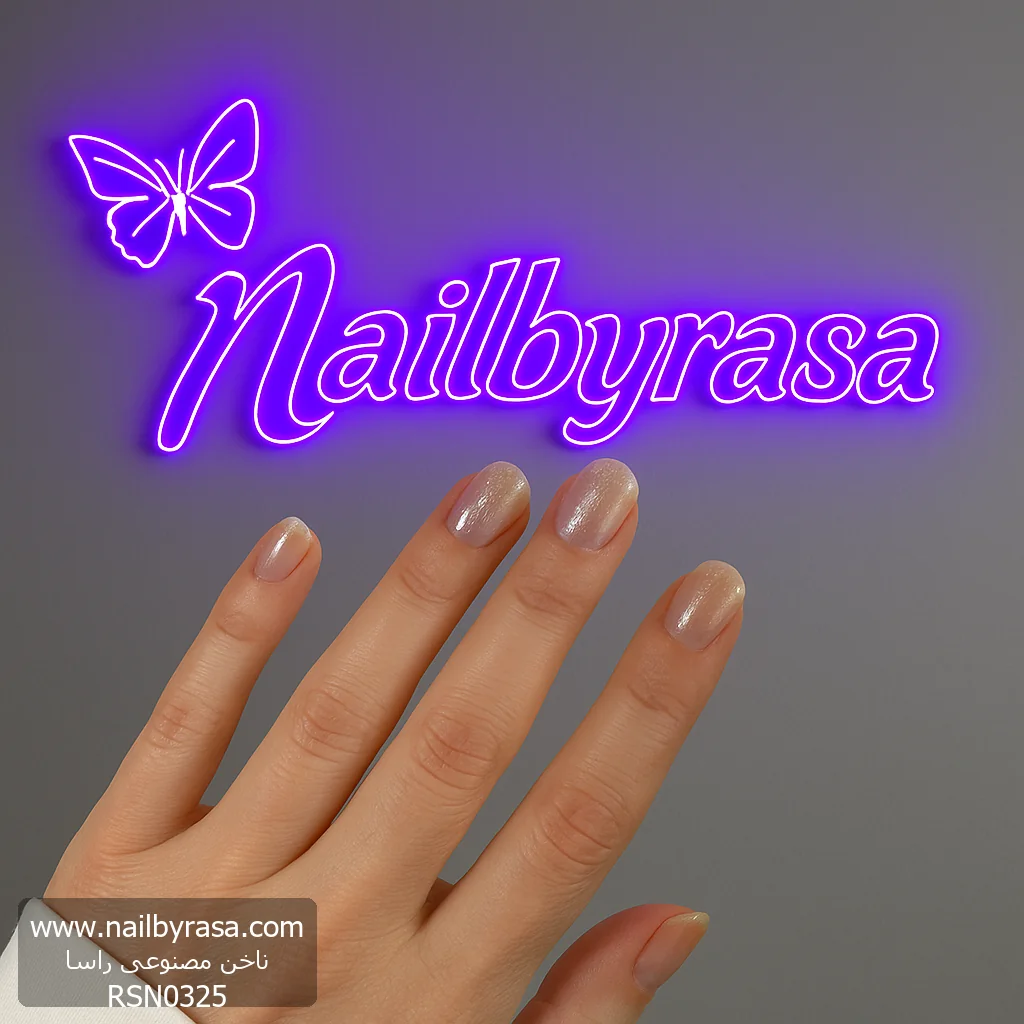 ناخن مصنوعی راسا مدل کرم نقره ای کهکشانی فرم مربع گرد کوتاه کد RSK1021