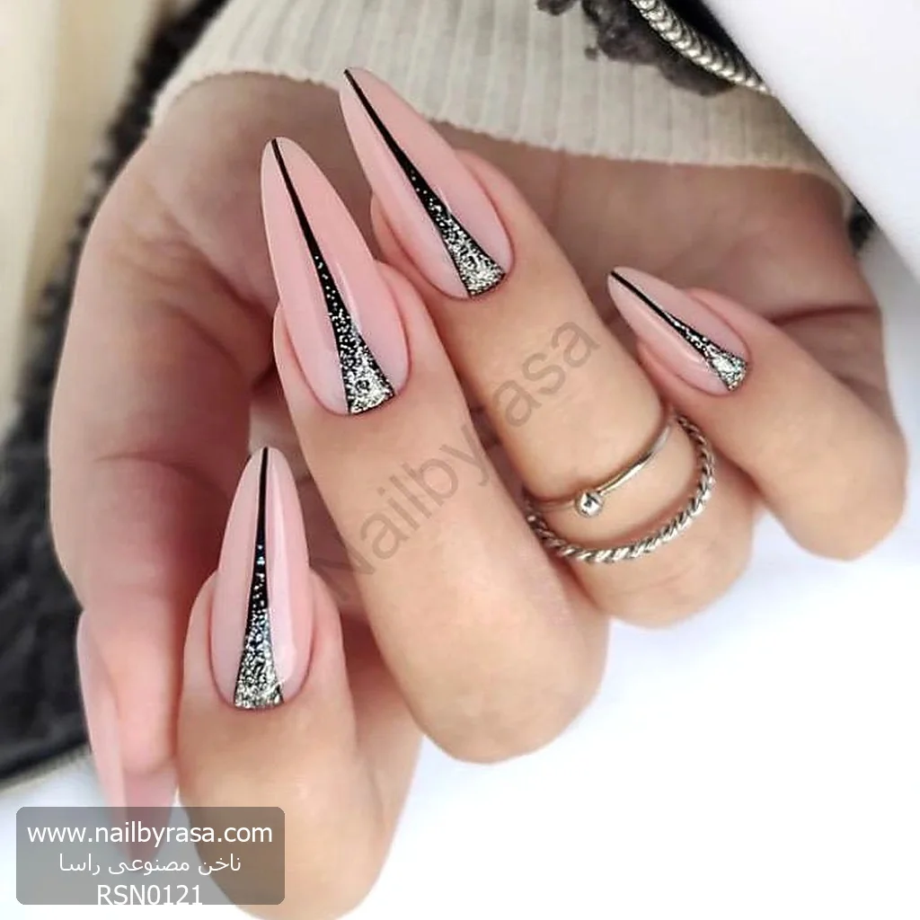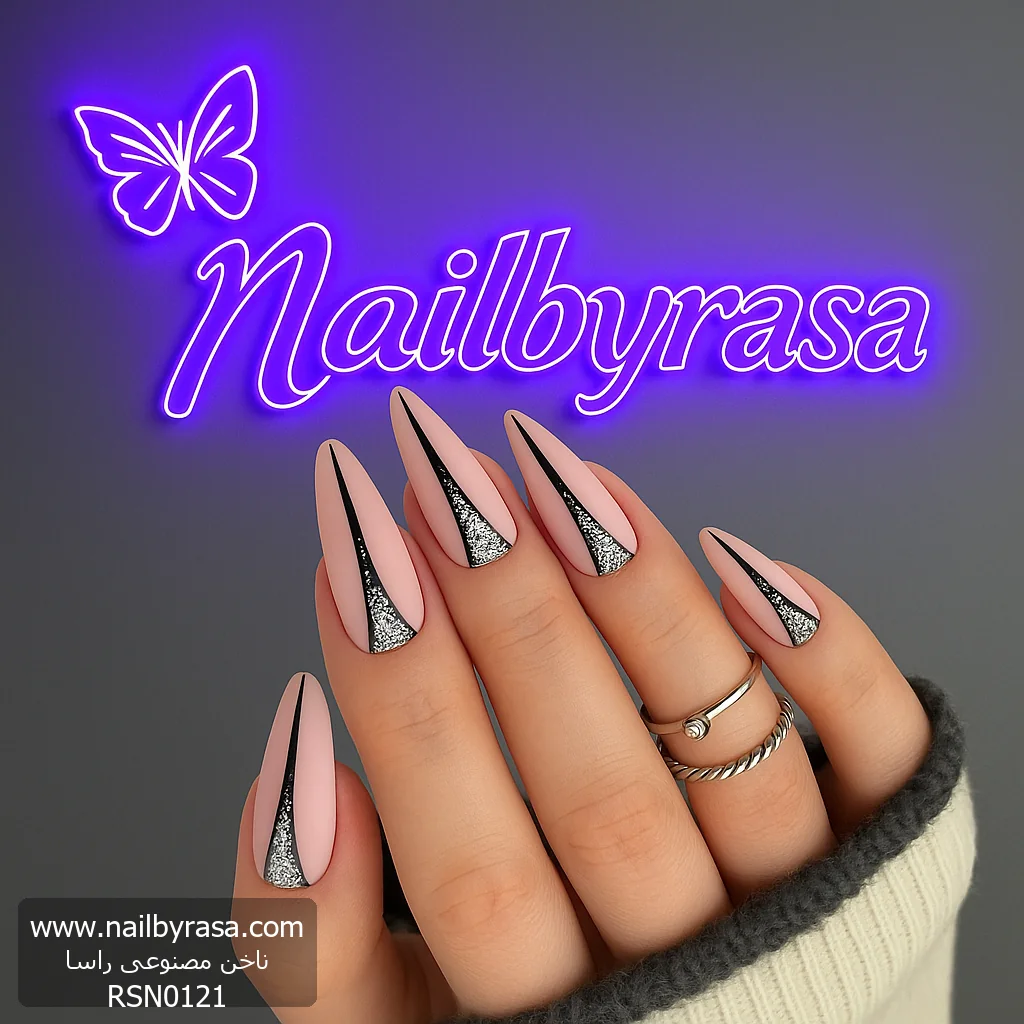 ناخن مصنوعی راسا مدل مشکی خط وسط ناخن