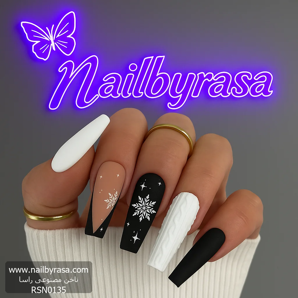 ناخن مصنوعی راسا مدل مشکی سفید مدل برف