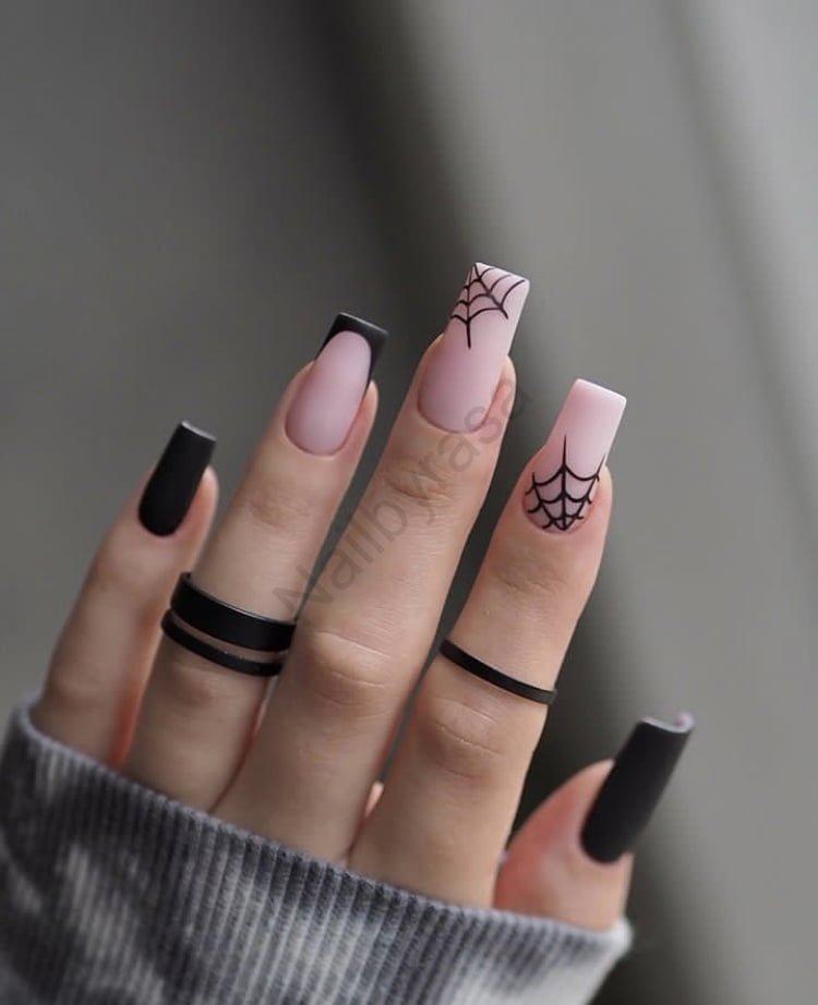 - تار عنکبوت ظریف: خطوط نازک مشکی که شبکهی تار عنکبوت را روی زمینه نود تشکیل دادهاند، یکی از محبوبترین طرحهای ترندی هستند که ظرافتی بینظیر به دست میدهند (دسته ناخن مصنوعی طرح دار).