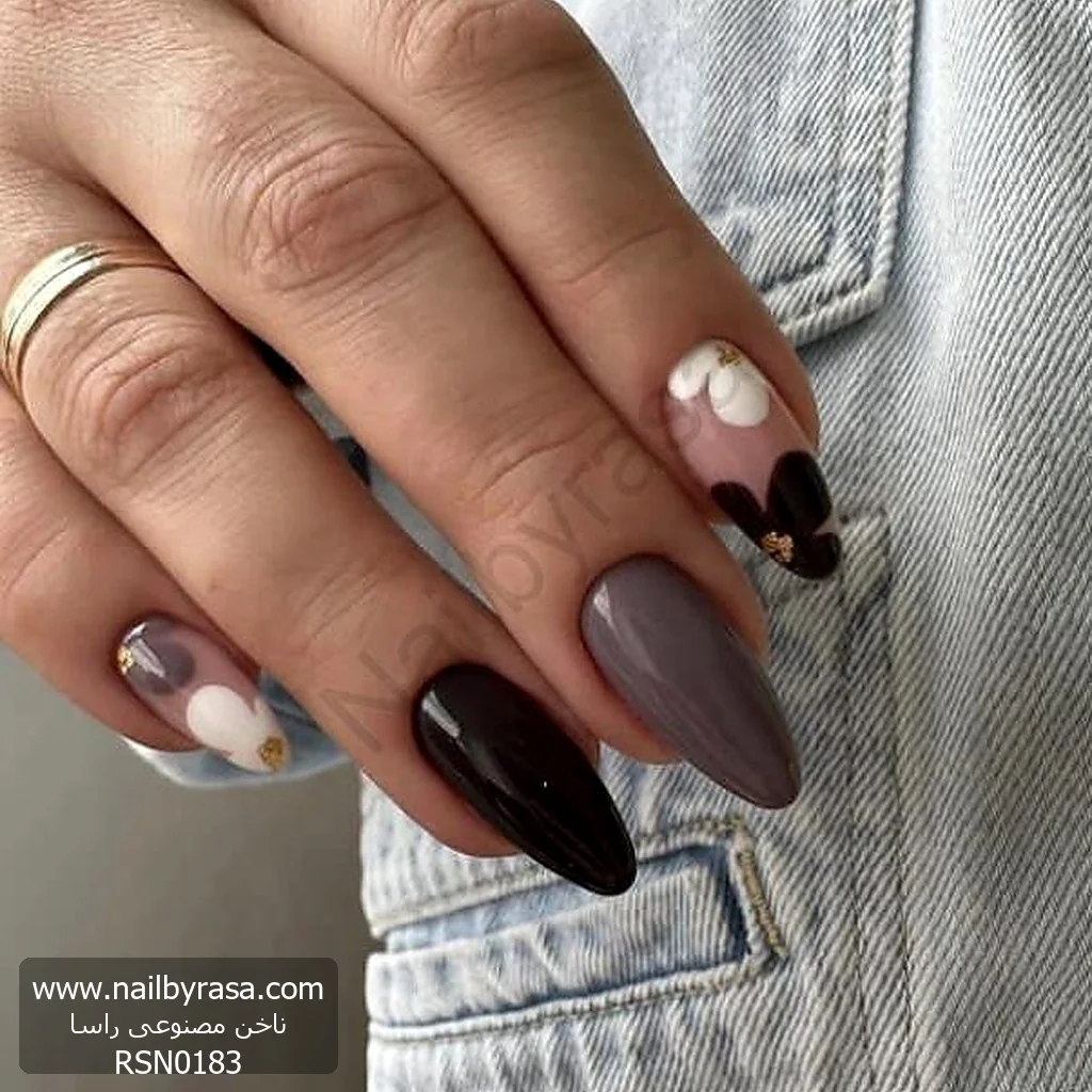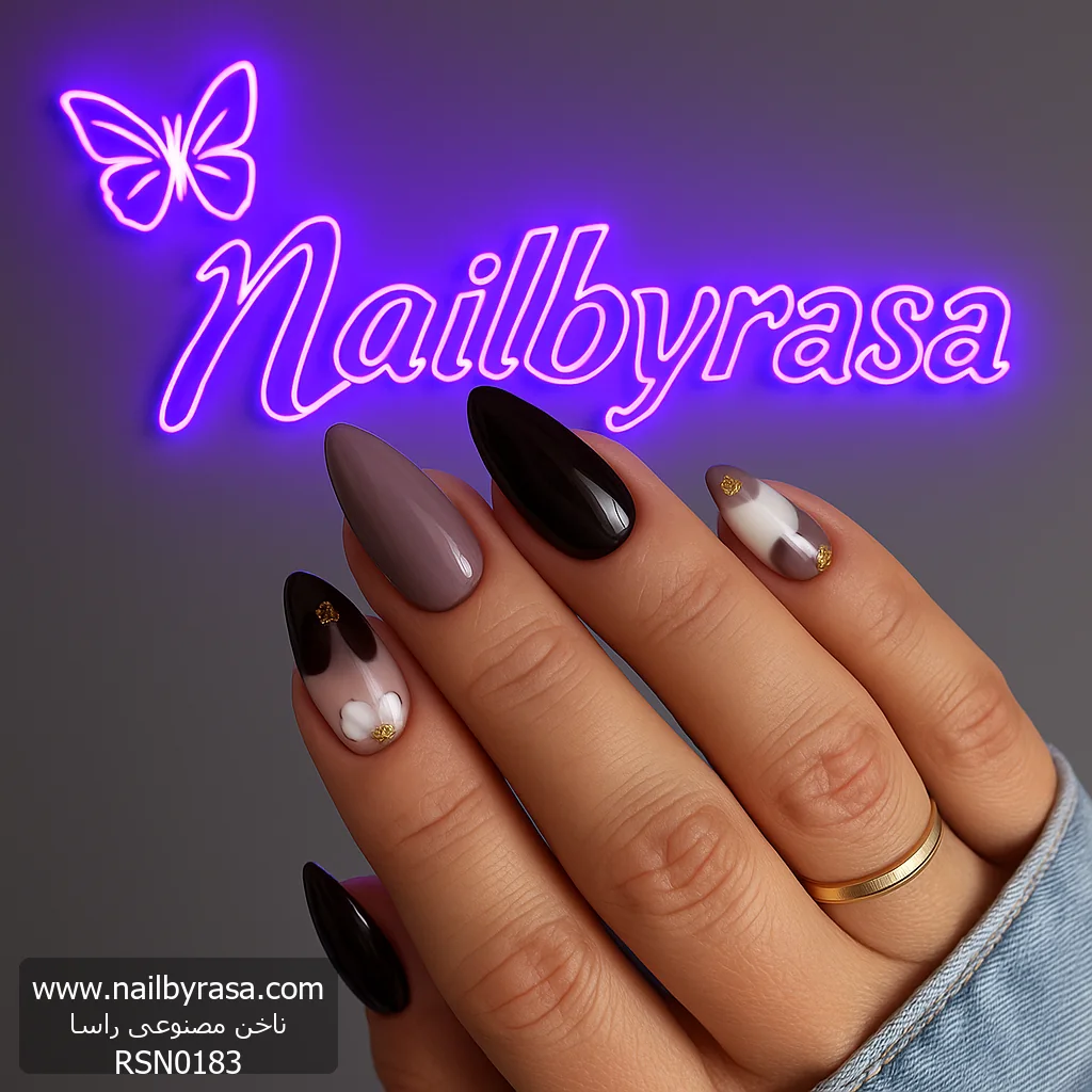 ناخن مصنوعی راسا مدل مشکی طوسی طرح گل