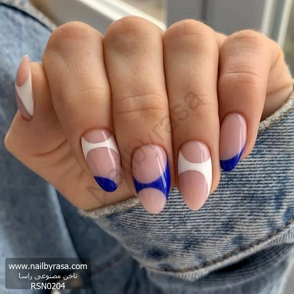 ناخن مصنوعی راسا مدل مینیمال سفید و آبی نفتی