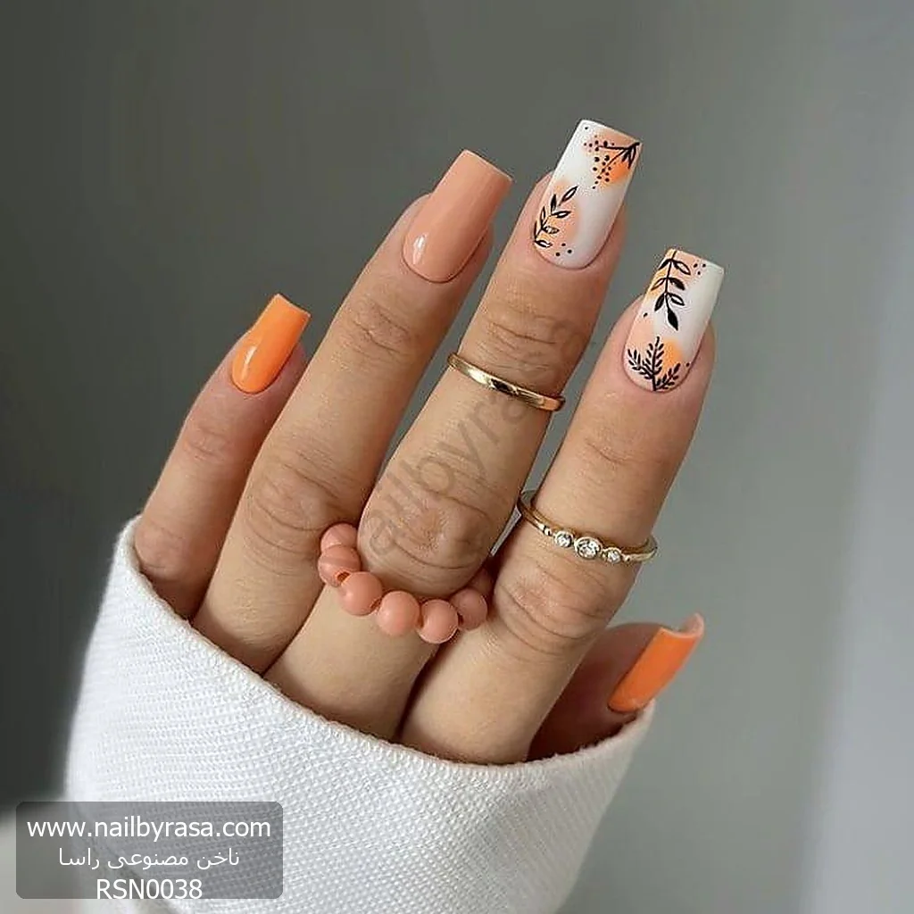 اگر عاشق رنگهای گرم طبیعت و استایلهای هنری هستید، ناخن مصنوعی راسا مدل RSN0038 برای شما طراحی شده است. این مدل با الهام از تغییر فصل و ریزش برگها، ترکیبی از مدرنیته و طبیعتگرایی (Naturalism) را به نمایش میگذارد که هم آرامشبخش است و هم بسیار مد روز.
