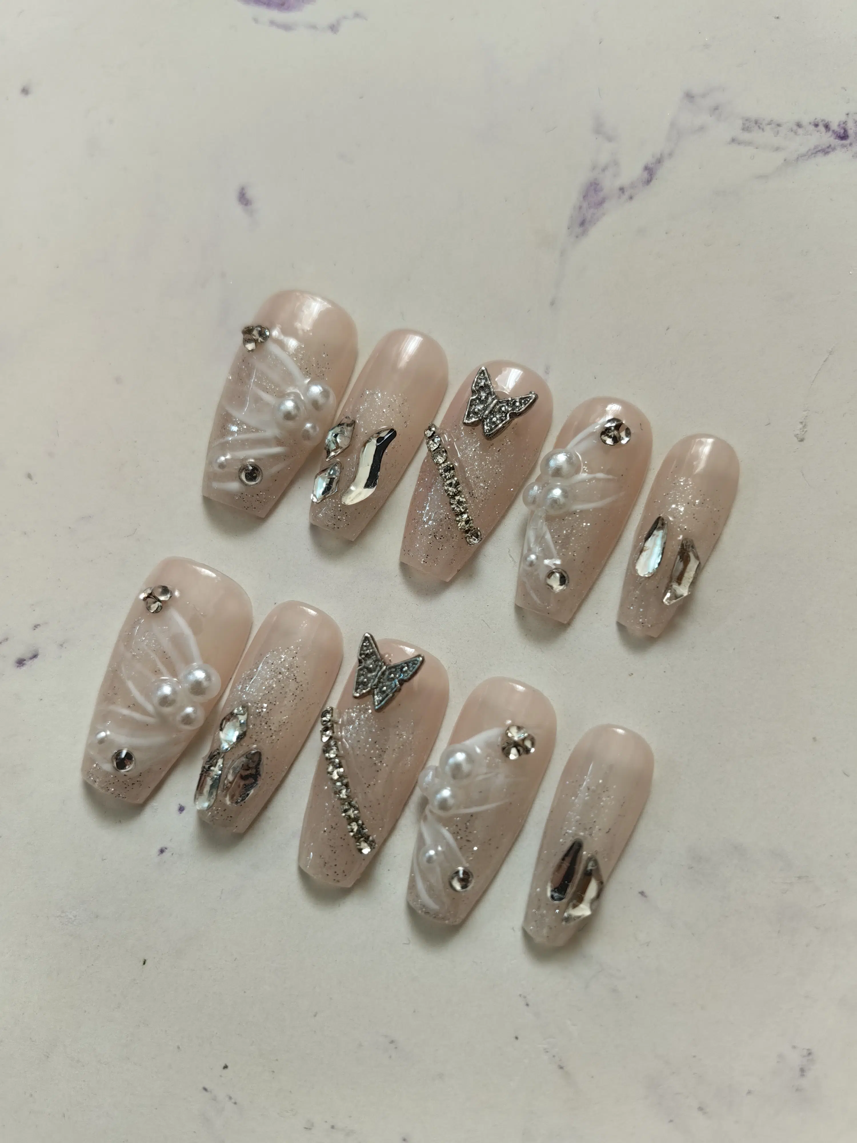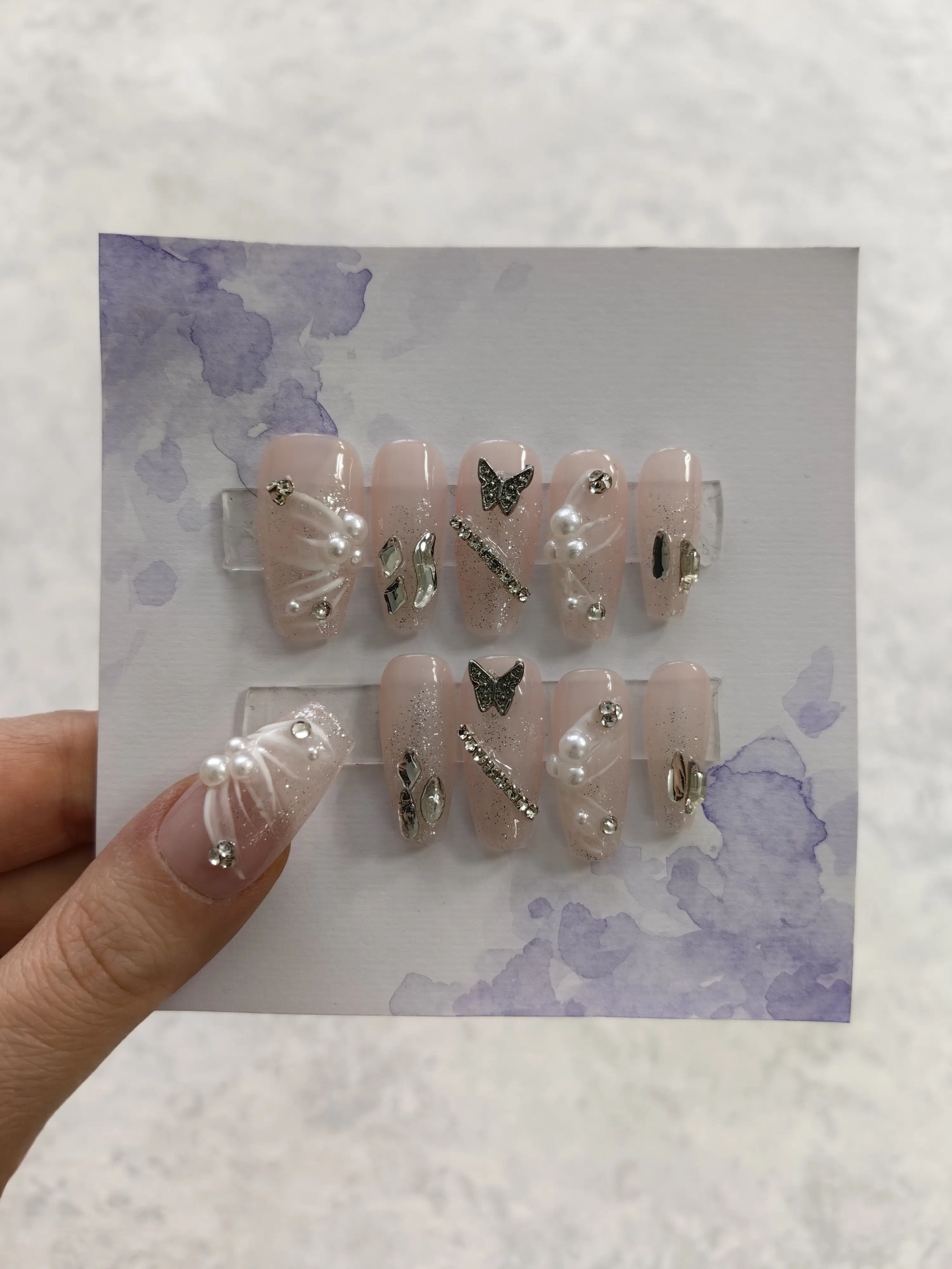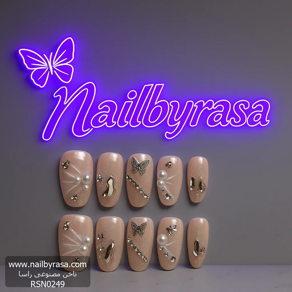 ناخن مصنوعی راسا مدل هلویی طرح گل و پروانه کد RSR938