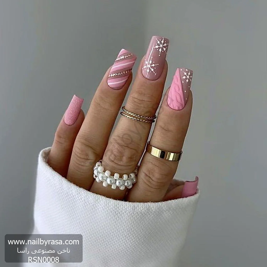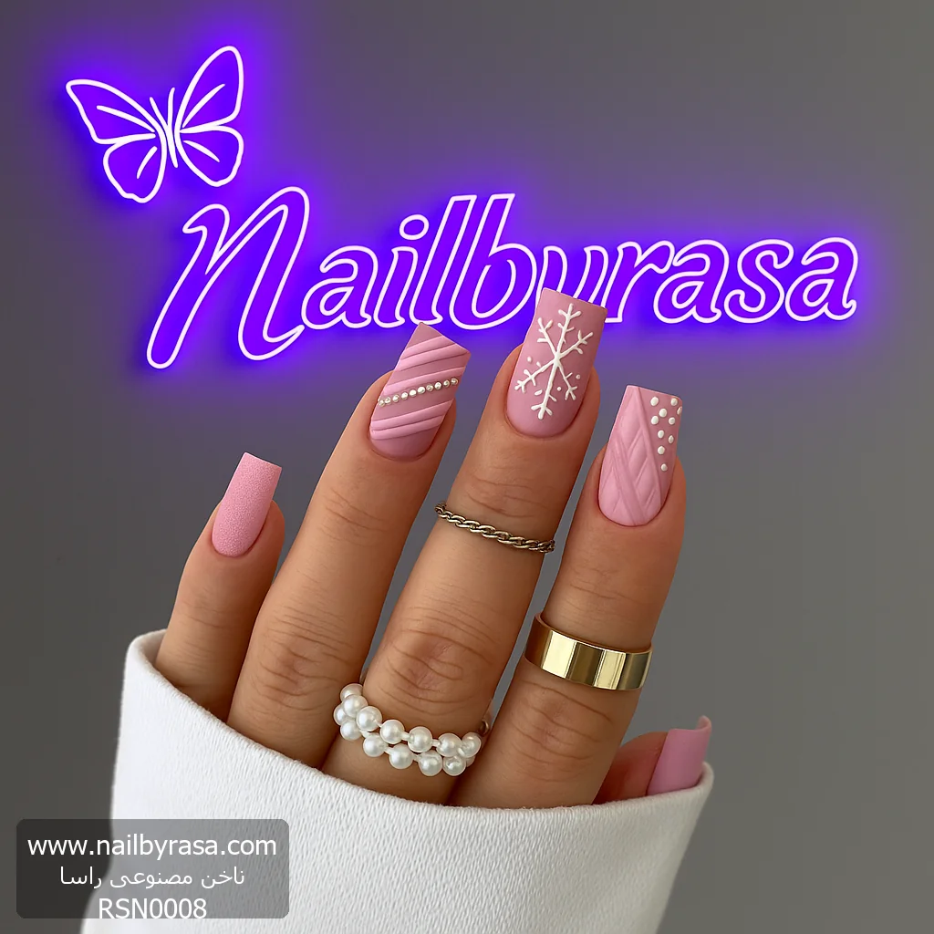 چه کسی گفته زمستان فقط فصل رنگهای تیره است؟ ناخن مصنوعی راسا مدل RSN0008 تمام قوانین را میشکند و با رنگ صورتی آدامسی و طرحهای برفی، رویای “یک زمستان شیرین” را محقق میکند. این مدل برای کسانی است که روحیه شاد و پرانرژی دارند و عاشق استایلهای فانتزی هستند.