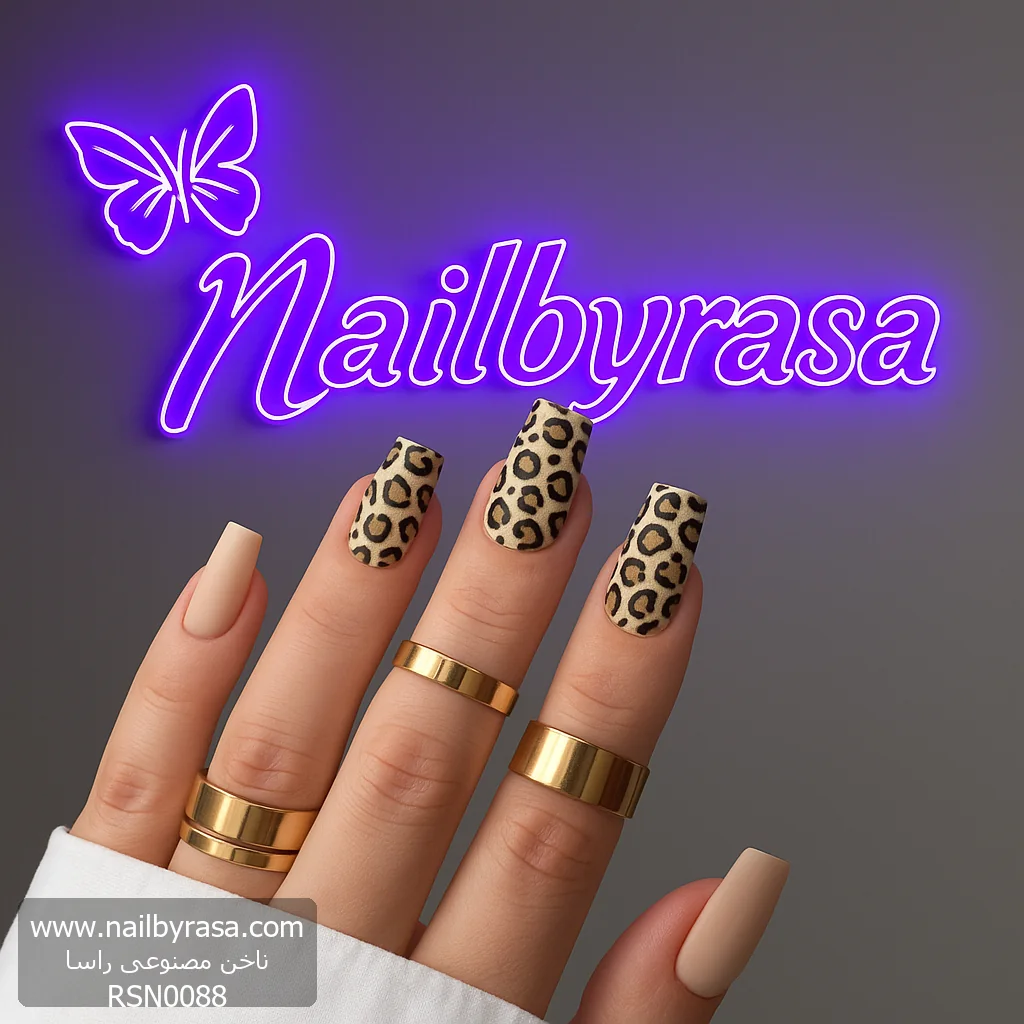 اگر عاشق طرحهای انیمال پرینت هستید اما میخواهید ناخنهایتان ظاهری “گران” و مجلسی داشته باشند، ناخن مصنوعی راسا مدل RSN0088 انتخاب نهایی شماست. اضافه شدن جزئیات طلایی به طرح کلاسیک پلنگی، این ست را به یک اکسسوری جواهرگونه تبدیل کرده است.