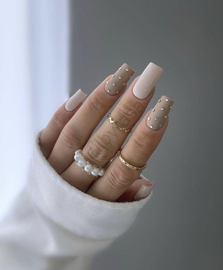 - بازی با رنگهای خنثی: ترکیب رنگ نود استخوانی (برای ناخنهای ساده) و نسکافهای/بیسکویتی (برای ناخنهای طرحدار)، گرمای خاصی به دست میبخشد و با هر رنگ پوستی ست میشود (لینک به ناخن مصنوعی نود).