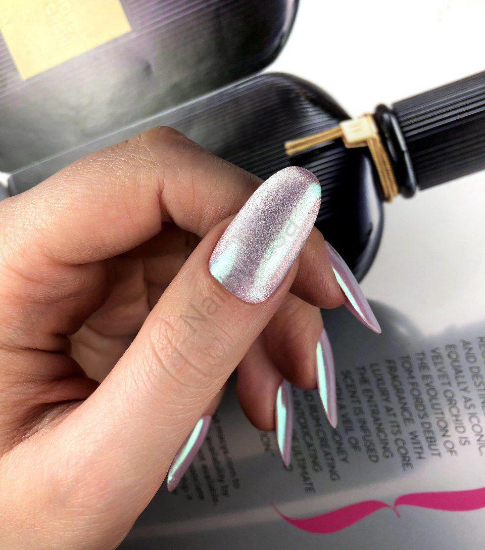 - افکت پری دریایی (Mermaid Effect): رنگ این ناخن ثابت نیست! با حرکت دست شما، طیفی از رنگهای صورتی ملایم، نقرهای یخی و حتی سبز روشن دیده میشود. این ویژگی باعث میشود هیچوقت از نگاه کردن به ناخنهایتان خسته نشوید (مشاهده ناخن مصنوعی اکلیلی/شاین).