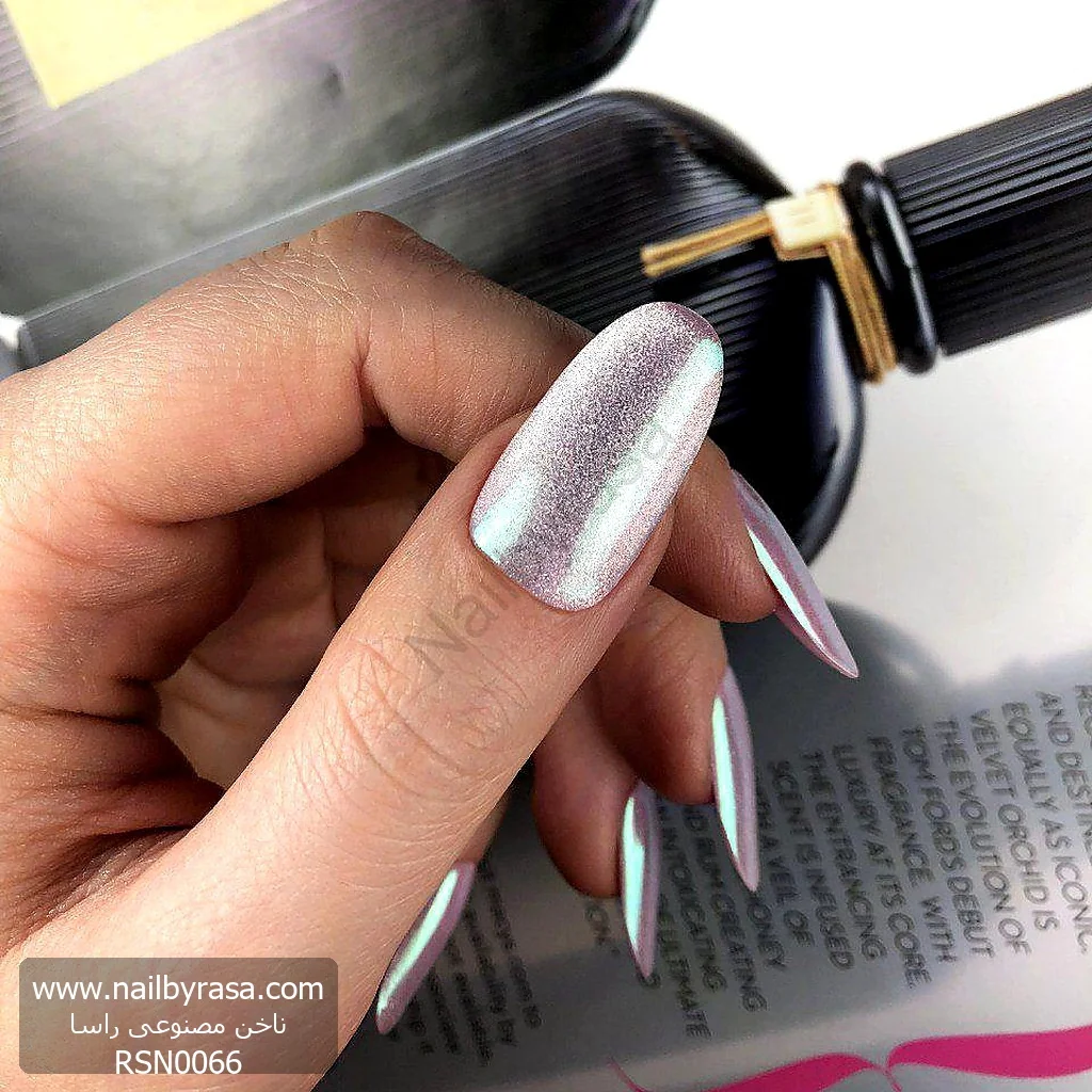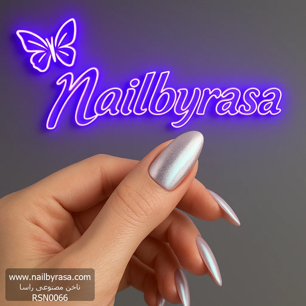 اگر میخواهید ناخنهایتان مثل جواهر برق بزند، ناخن مصنوعی راسا مدل RSN0066 دقیقاً همان چیزی است که دنبالش هستید. این مدل با استفاده از تکنیکهای جدید پودر کروم، ظاهری “آینهای” و “هولوگرافیک” ایجاد کرده که یکی از بزرگترین ترندهای سال در دنیای فشن است.