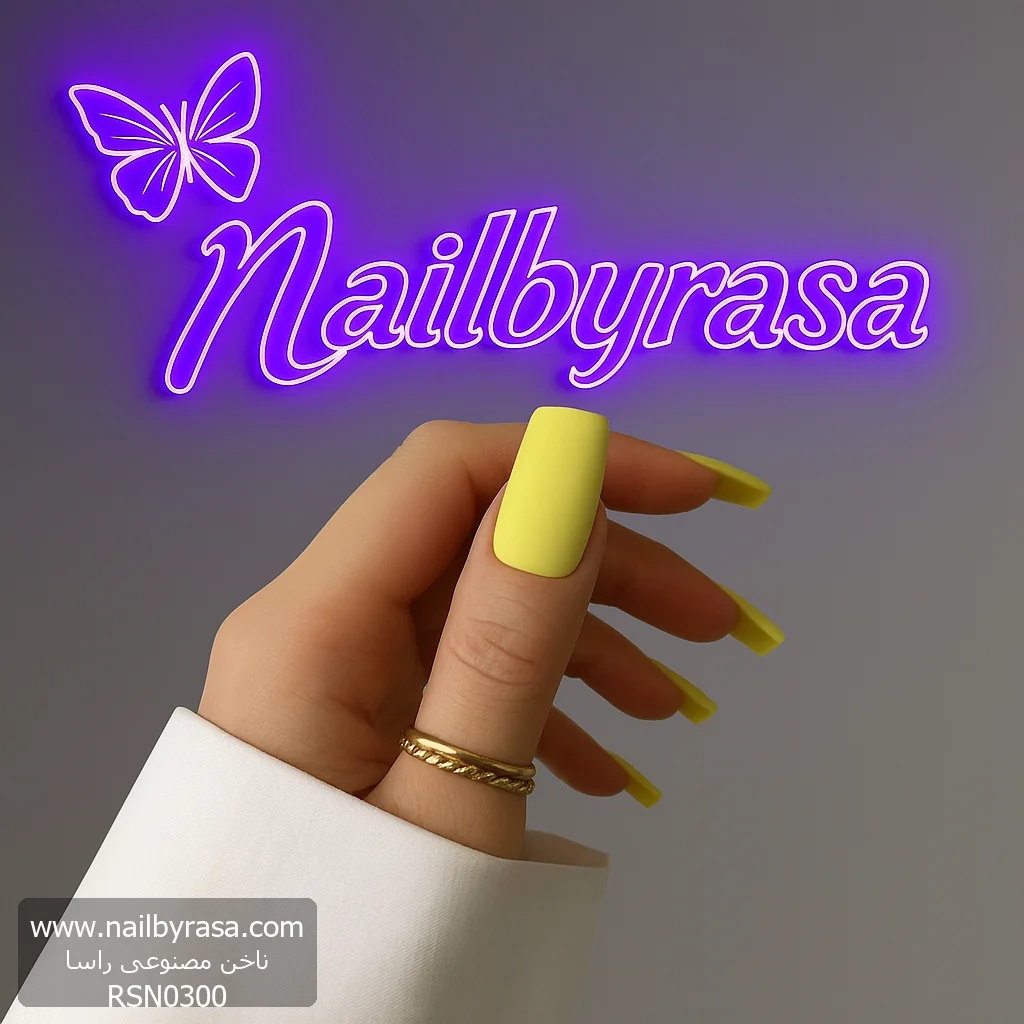 ناخن مصنوعی رنگی ساده راسا رنگ زرد فرم مربع