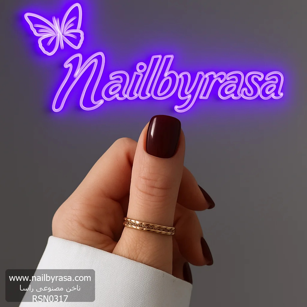 ناخن مصنوعی رنگی ساده راسا رنگ زرشکی فرم مربع گرد کوتاه