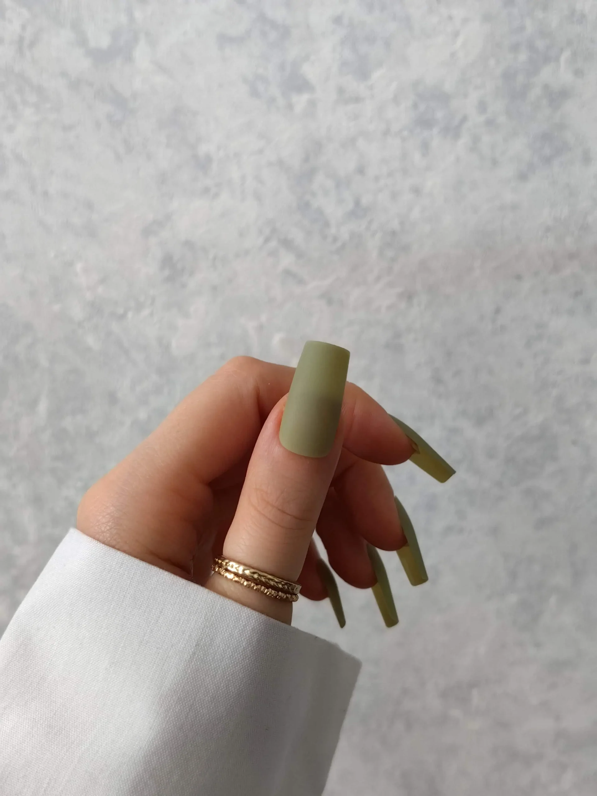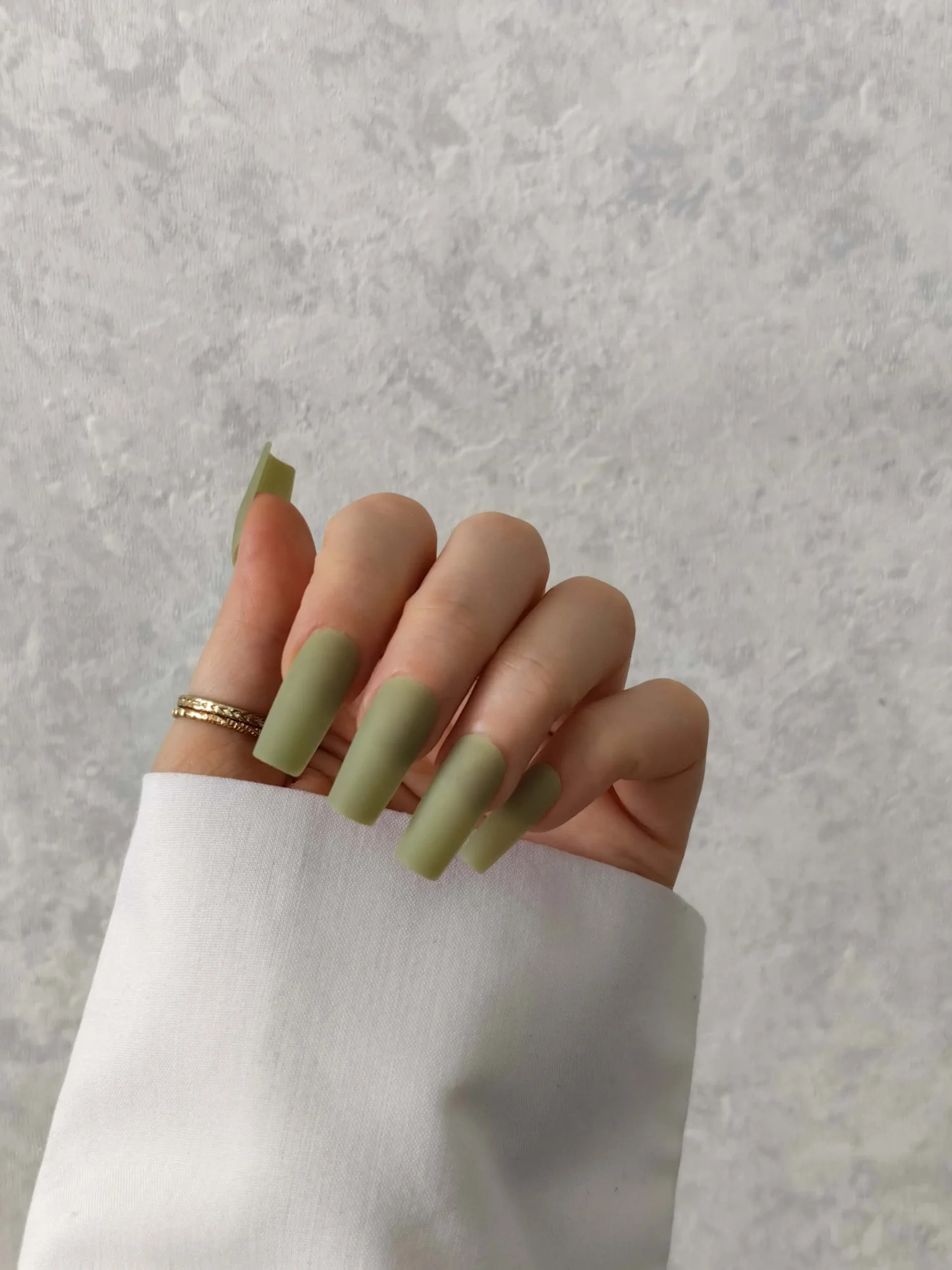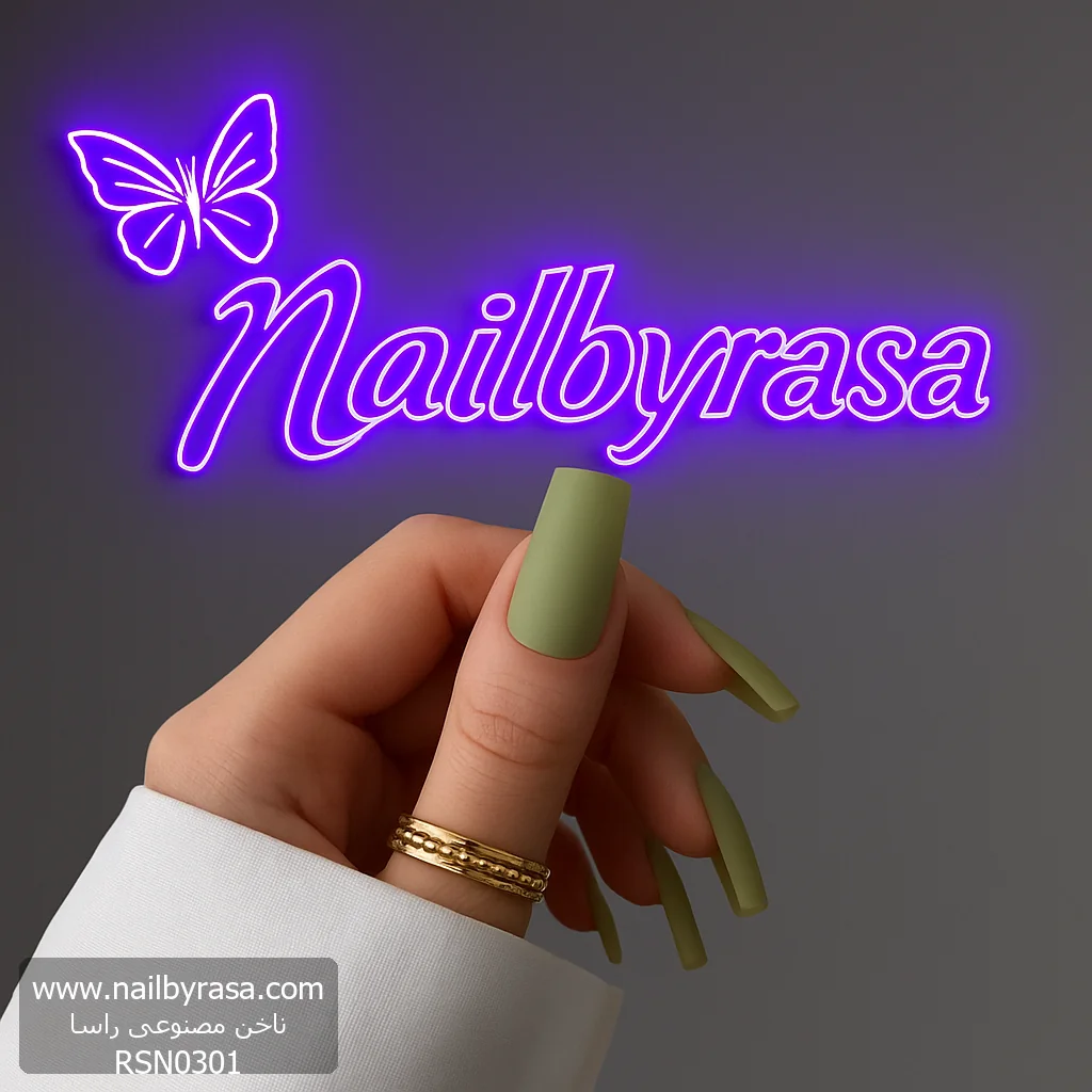 ناخن مصنوعی رنگی ساده راسا رنگ سبز یشمی فرم مربع