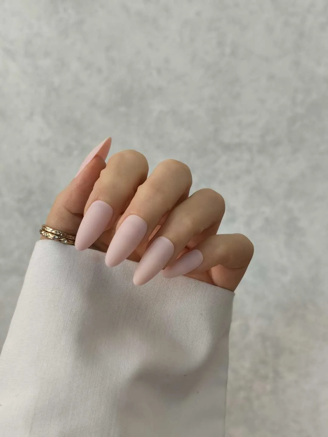 ناخن مصنوعی رنگی ساده راسا رنگ صورتی کرم بیس نود فرم بادامی مات