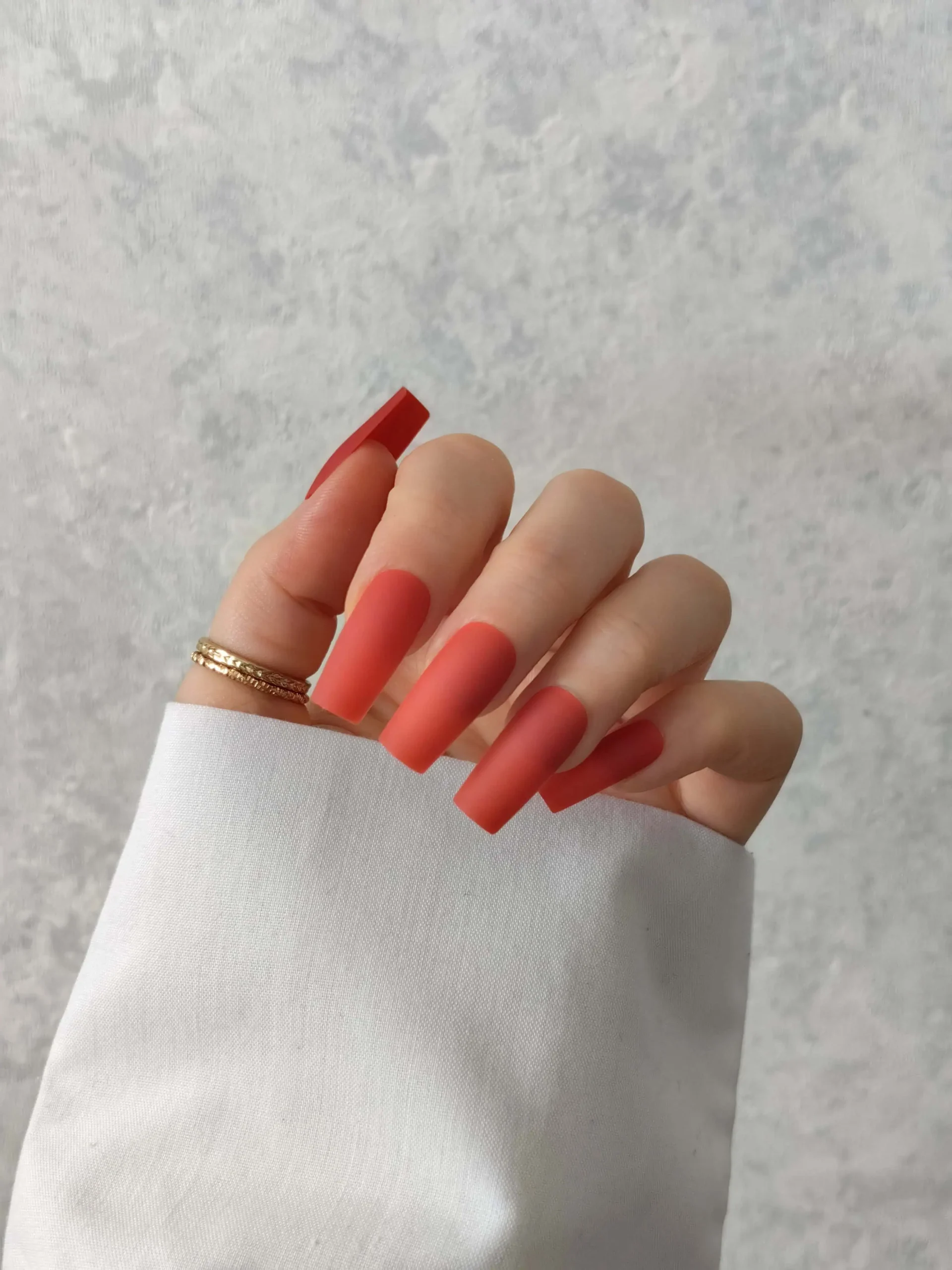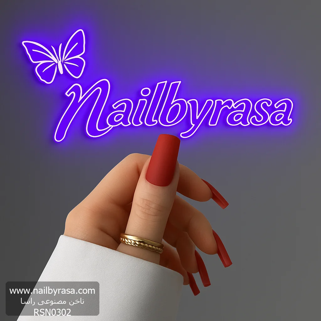 ناخن مصنوعی رنگی ساده راسا رنگ قرمز فرم مربع