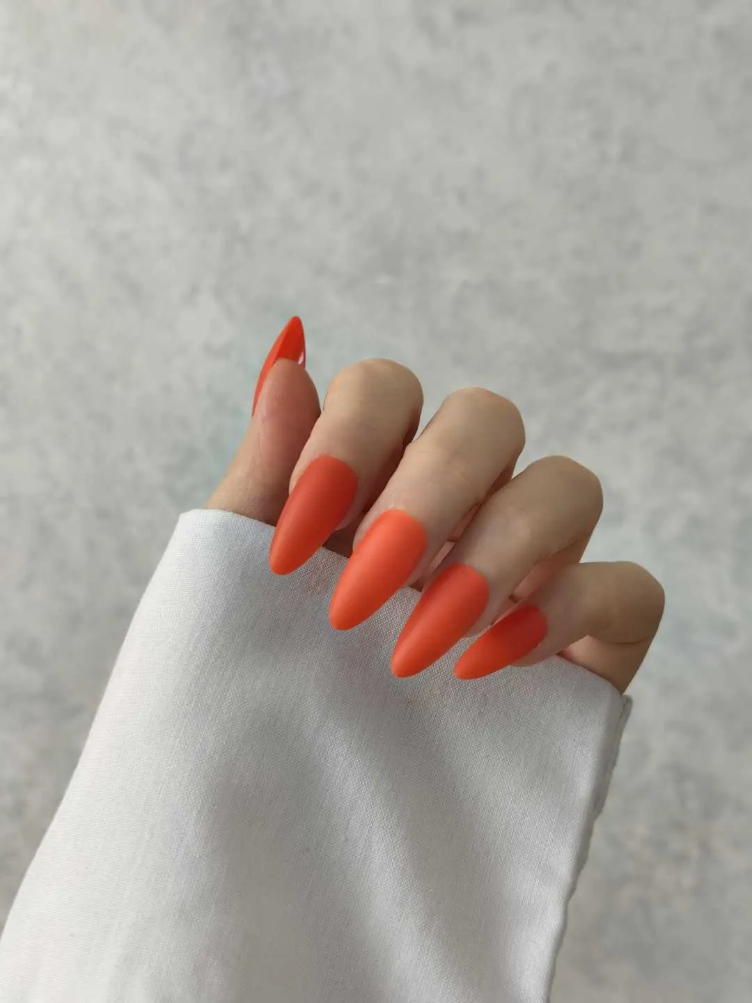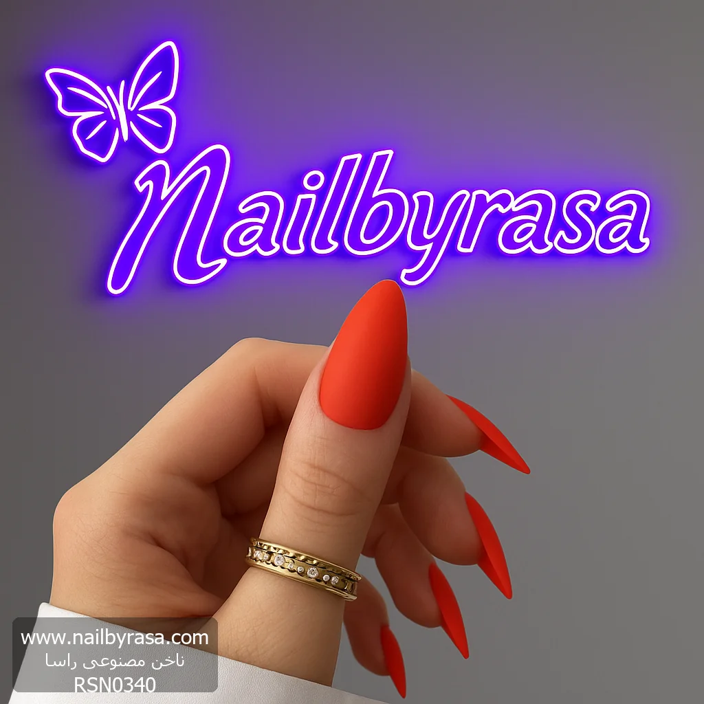 ناخن مصنوعی رنگی ساده راسا رنگ قرمز گوجه ای فرم بادامی مات