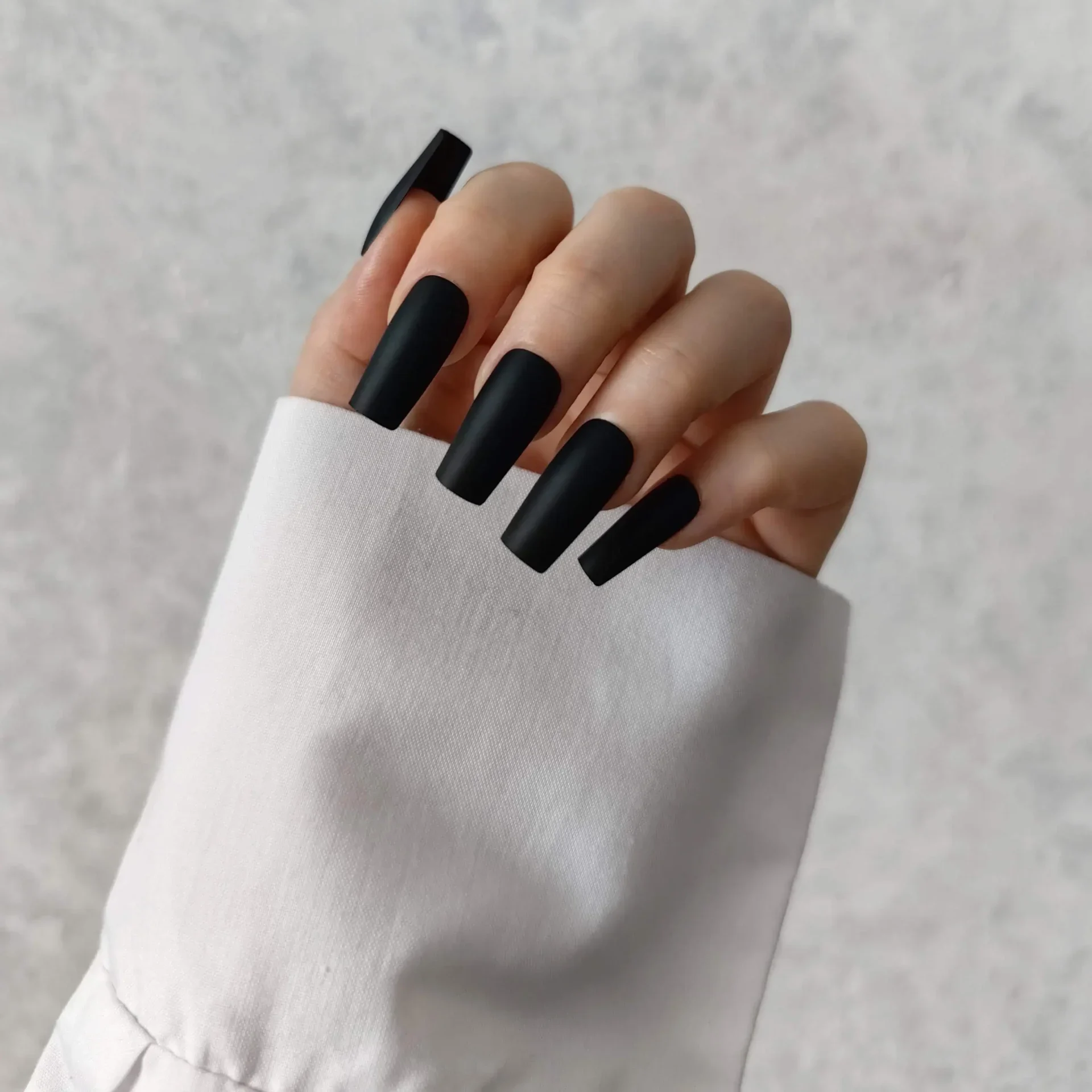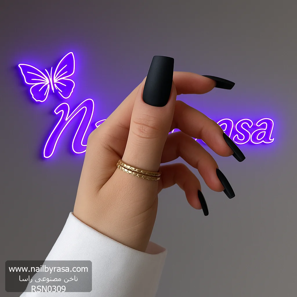 ناخن مصنوعی رنگی ساده راسا رنگ مشکی فرم مربع