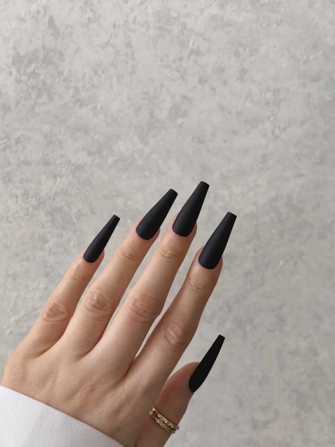 ناخن مصنوعی رنگی ساده راسا رنگ مشکی فرم گلدانی بلند مات