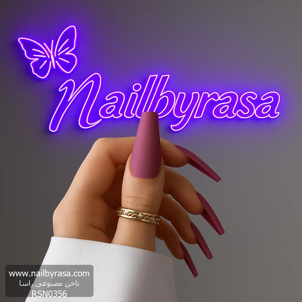ناخن مصنوعی رنگی ساده راسا رنگ کالباسی بنفش گلدانی بلند مات