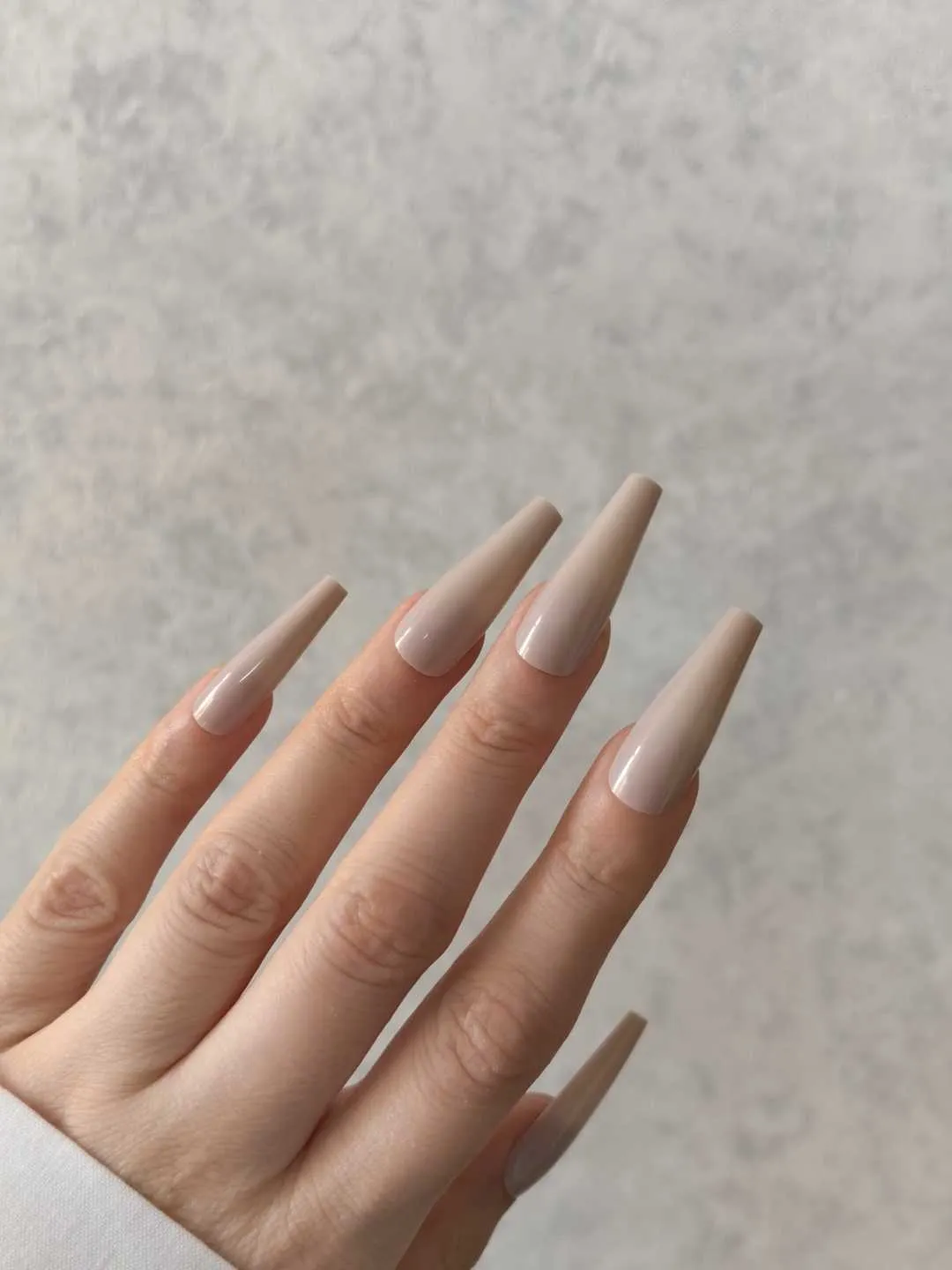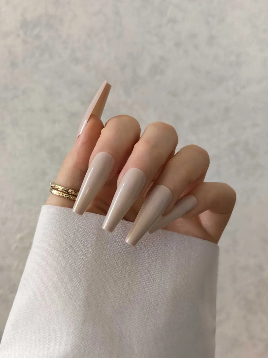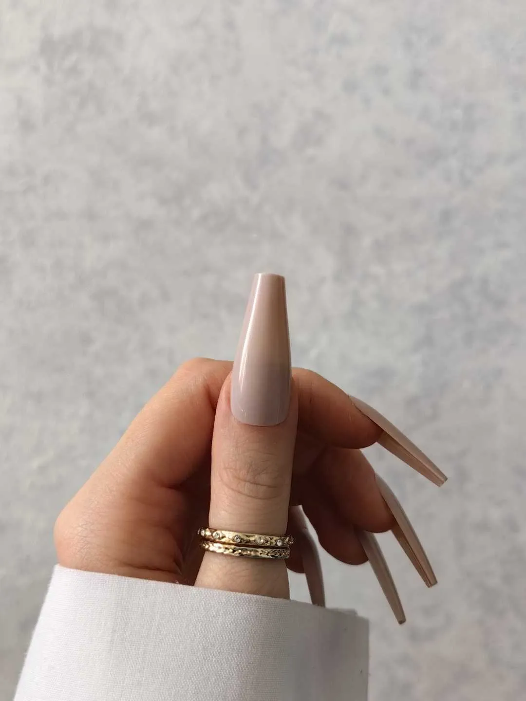 ناخن مصنوعی رنگی ساده راسا رنگ کرمی گلدانی بلند براق
