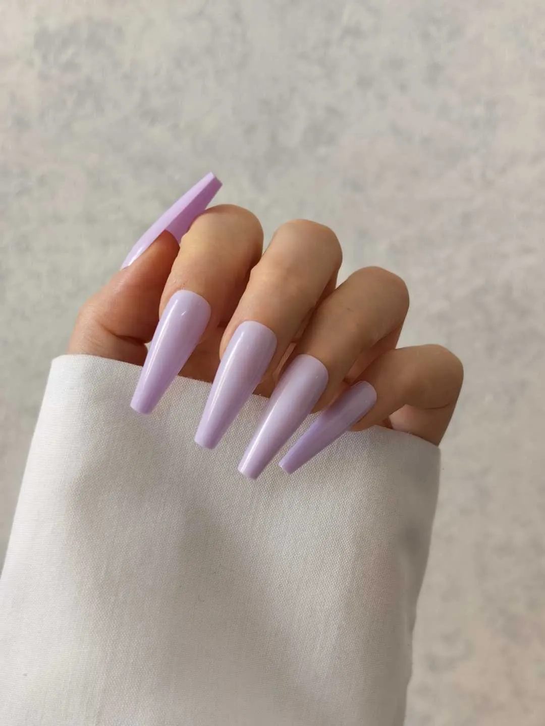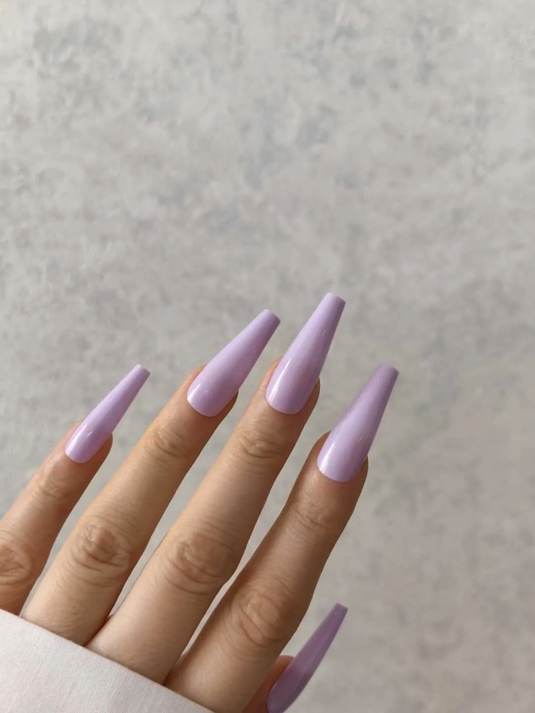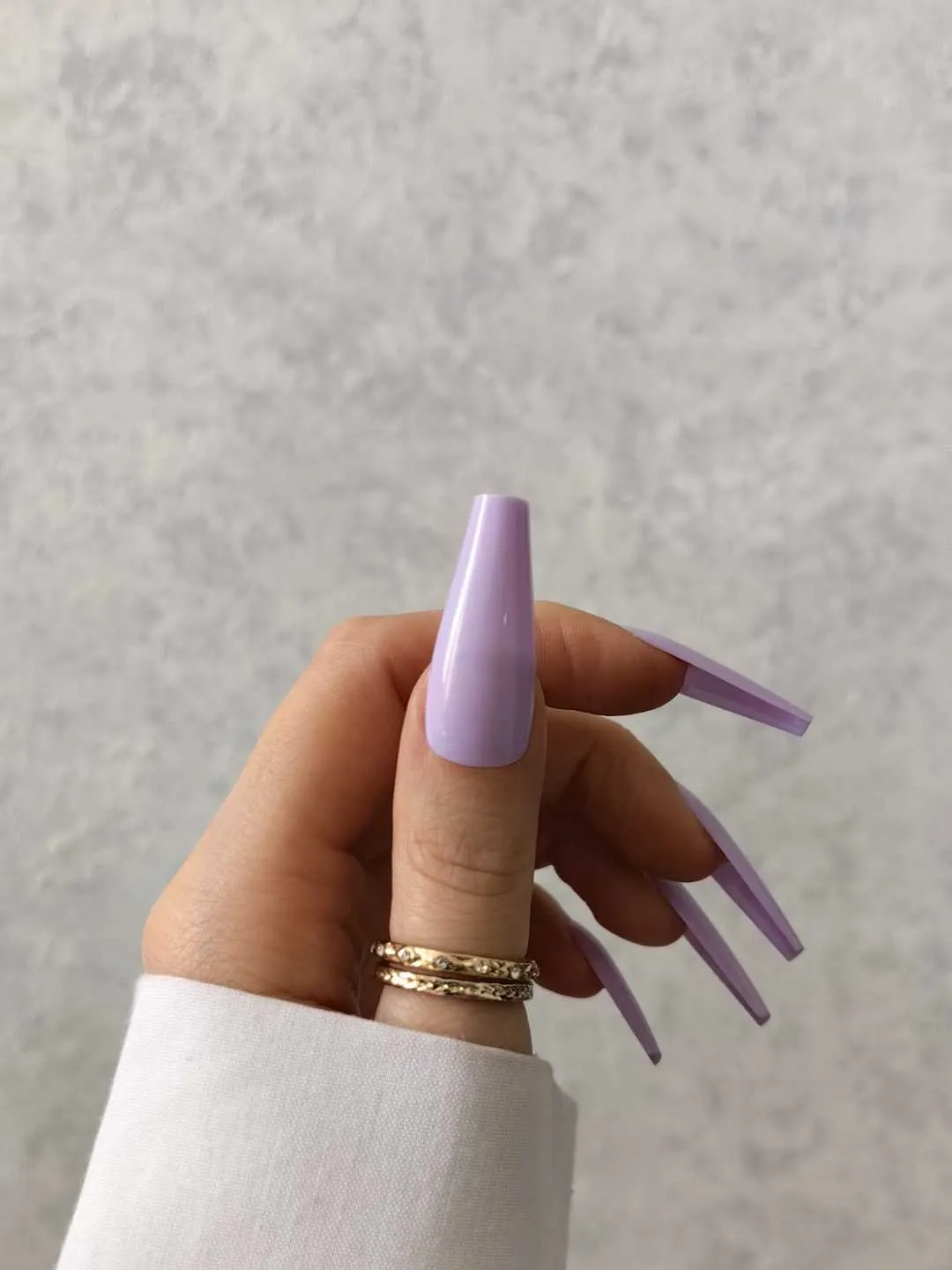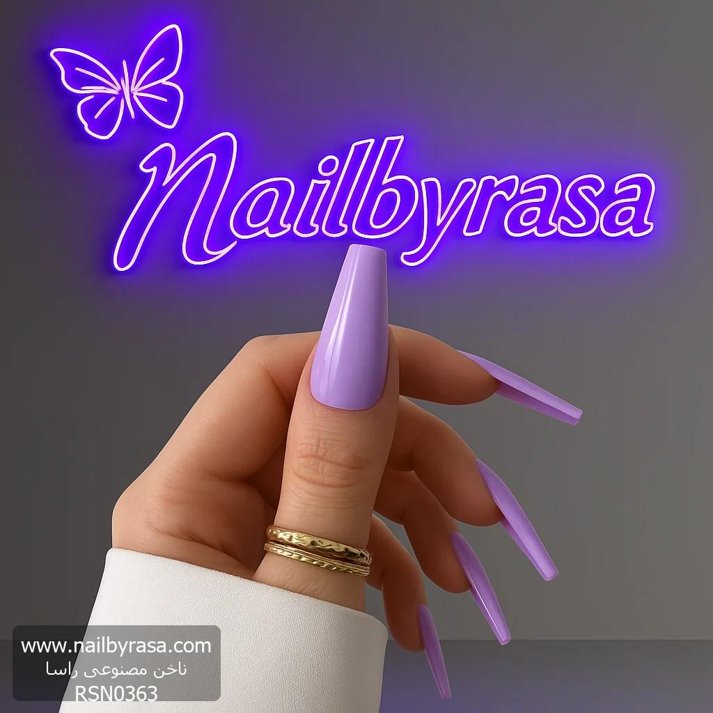ناخن مصنوعی رنگی ساده راسا رنگ یاسی گلدانی بلند براق